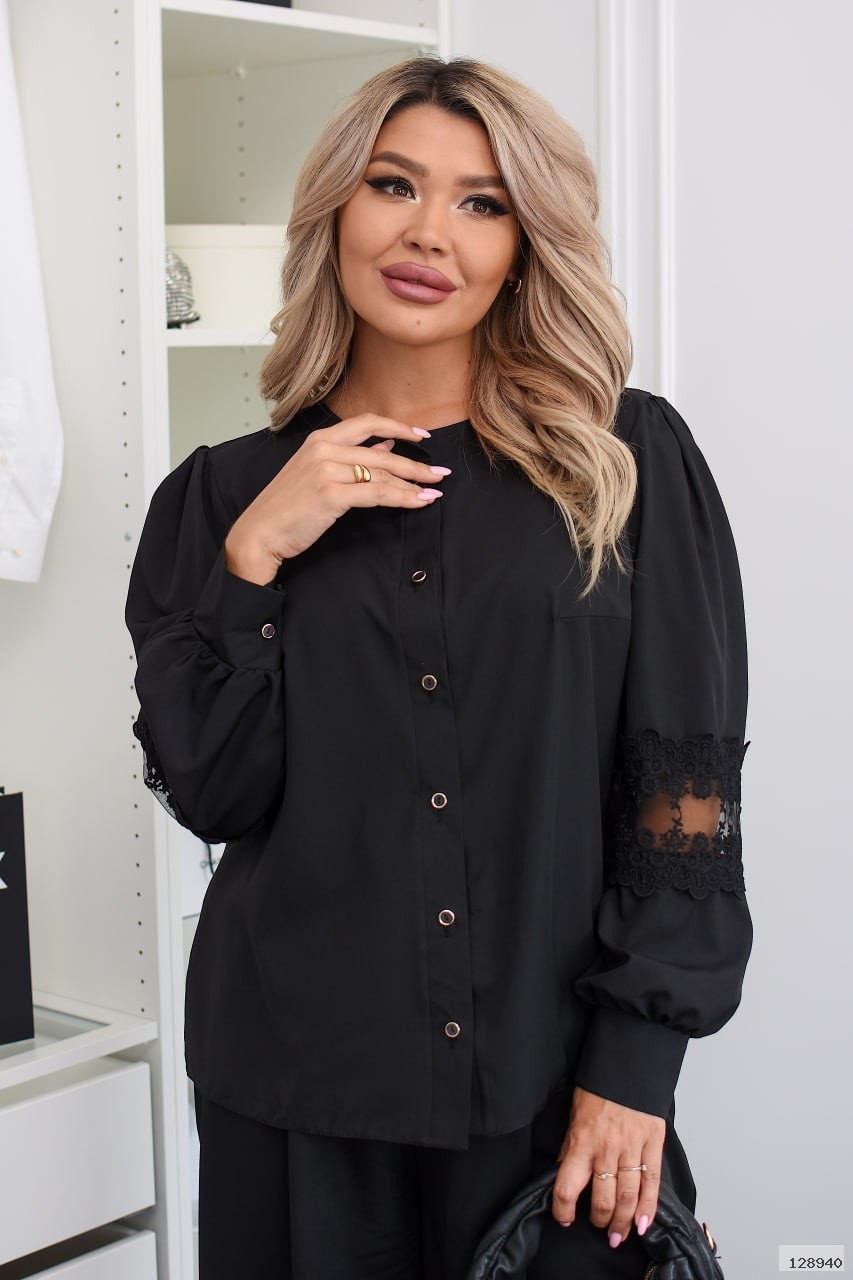 Блуза з ніжним мереживом – ідеальний вибір для створення елегантного образу. Легка тканина ідеально сідає на фігуру, додаючи вашому стилю вишуканості.