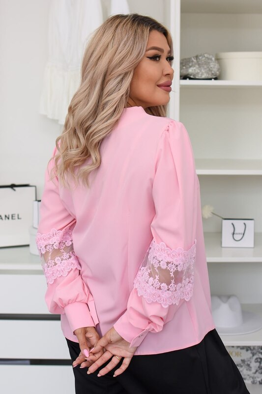 Блуза з ніжним мереживом – ідеальний вибір для створення елегантного образу. Легка тканина ідеально сідає на фігуру, додаючи вашому стилю вишуканості.