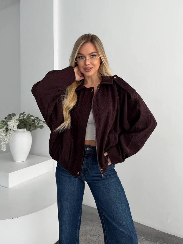 Стильний бомбер із вельвету на підкладці. Оверсайз стиль