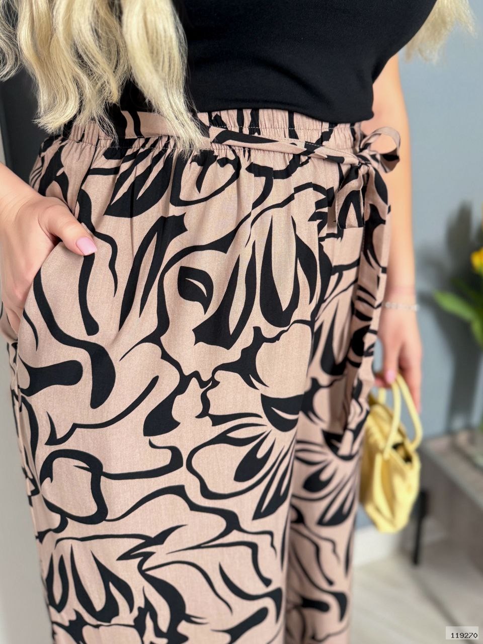 Вільні брюки ,з натуральної тканини,прямого крою,пояс на різинці,по бокам кишені,попереду поясок із тканини.
