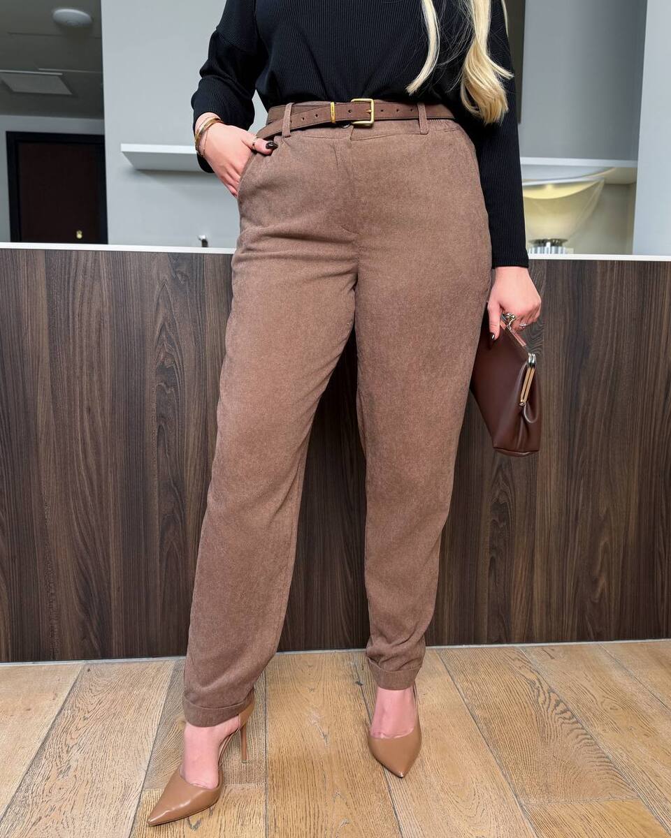 БРЮКИ З МІКРОВІЛЬВЕТУ В СТИЛІ МОМ! Брюки вільного крою, по низу манжет. Пояс частково на широкій гумці Функціональні кишені по бокам і накладні ззаду. Застібка блискавка+ гудзик ( на поясі) Ідеально сидять на фігурі і гарна посадка