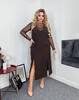 Нарядний комплект : плаття без рукавів , з боків дві кишені -імітації , спереду два розрізи вище колін, V-образний виріз; гольф з довгим рукавом.