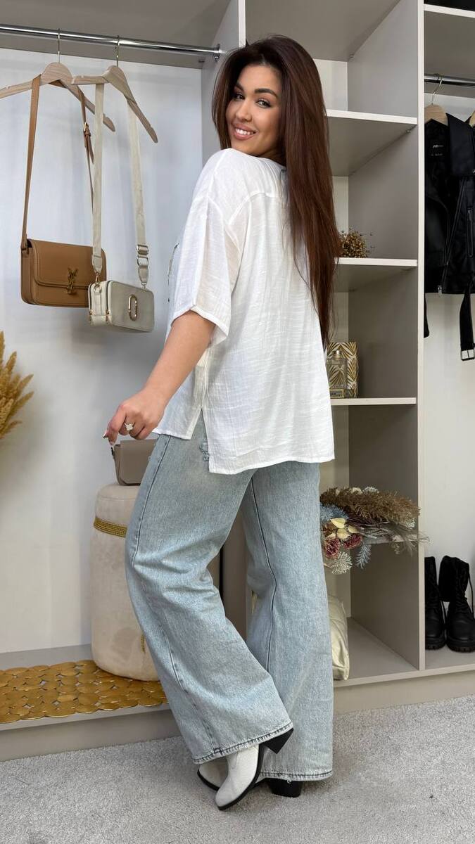 Легкий натуральний льон, комфортний вільний крій. Головний акцент ефектний 3D принт-вишивка спереду. Ідеальна для літа та щоденних образів.