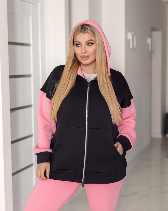Стильний, теплий зуді на змійці. Подвійний капюшон, манжети рукавів та пояса - з основної тканини.