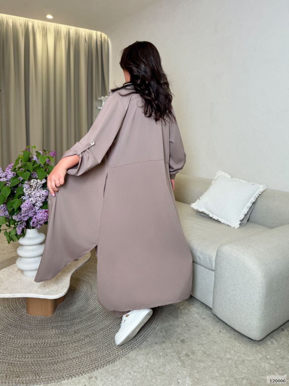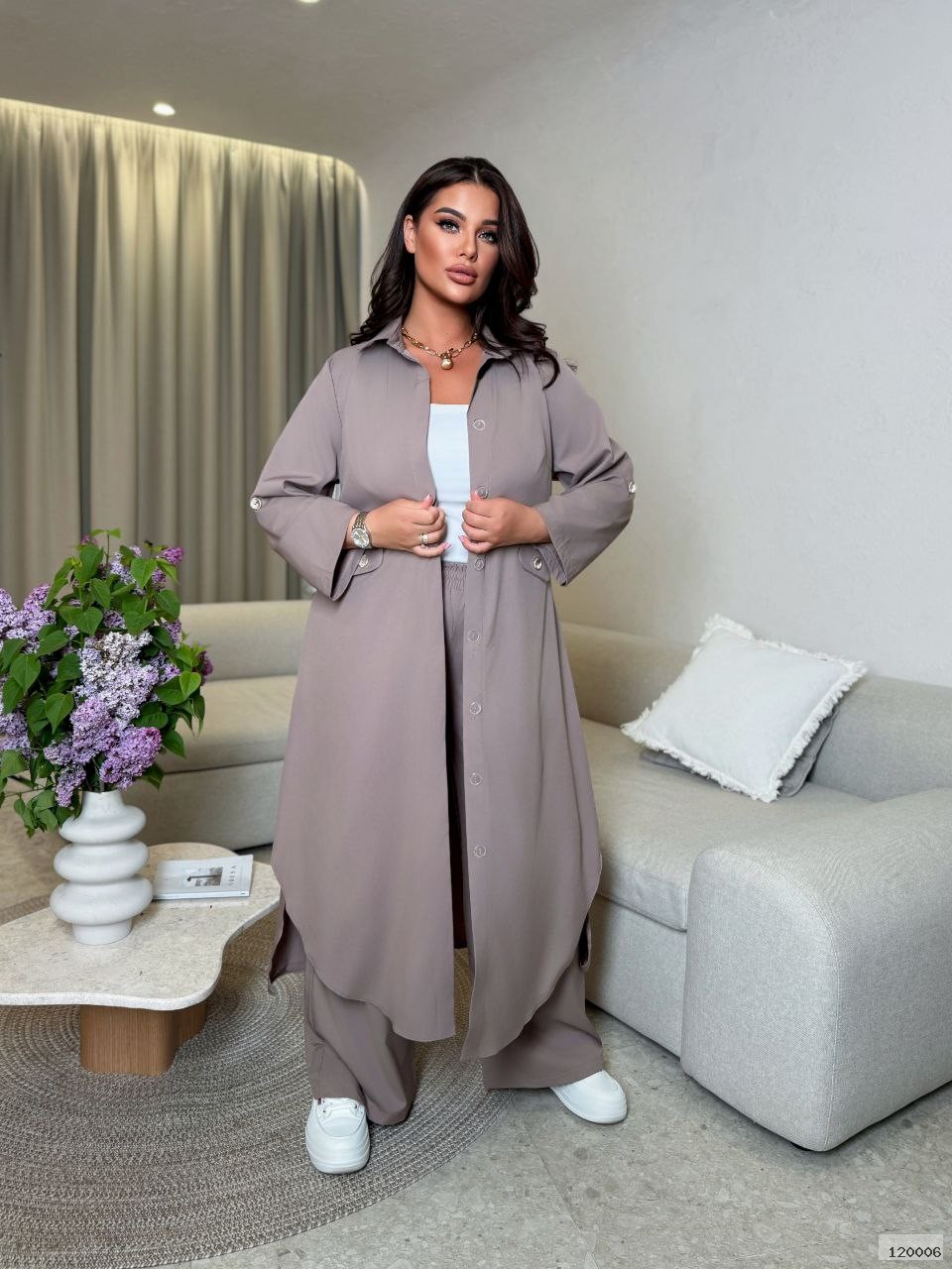 Стильний, універсальний комплект двійка (кардиган+штани палаццо). Кардиган можна використовувати в якості сукні та носити окремо, декорований клапанами на ґудзиках. Штани вільного крою, пояс на резинці.
