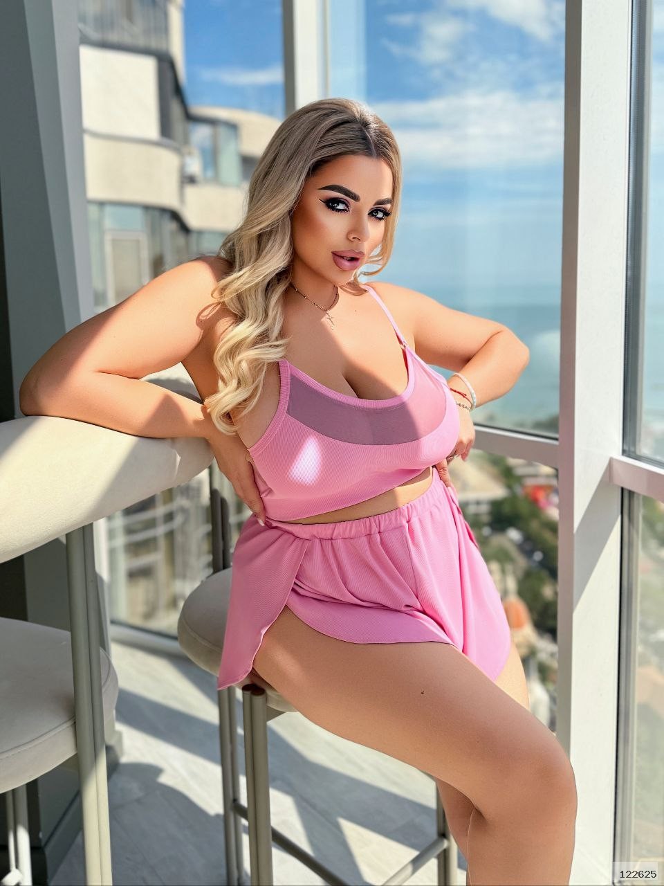 46-48 Об'єм грудей - 90 см, Об'єм талії (довжина гумки) - 74см, Об'єм стегон - 112 см, Висота шорт - 32 см, Висота ТОПу - 32 см, Об'єм гумки під грудьми - 82 см
