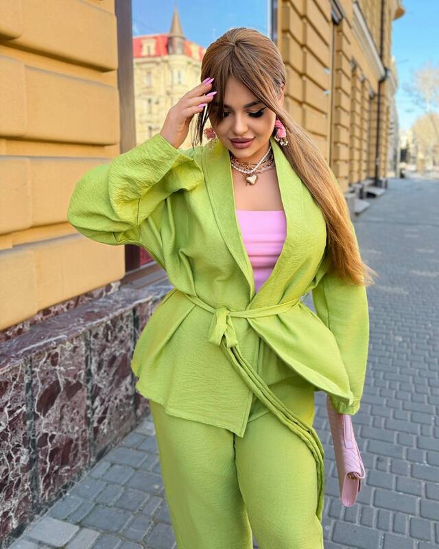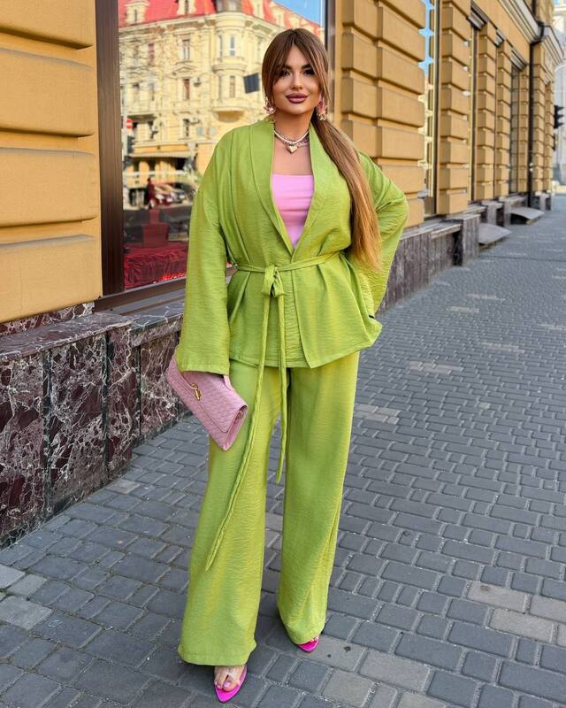 Для тих хто обирає натуральні тканини костюм штани та кофтинка на запах