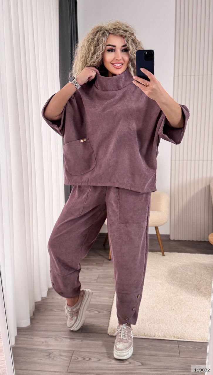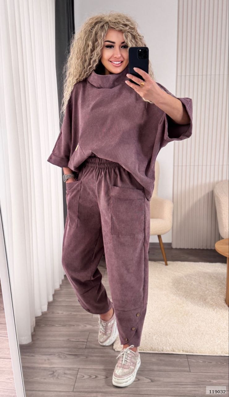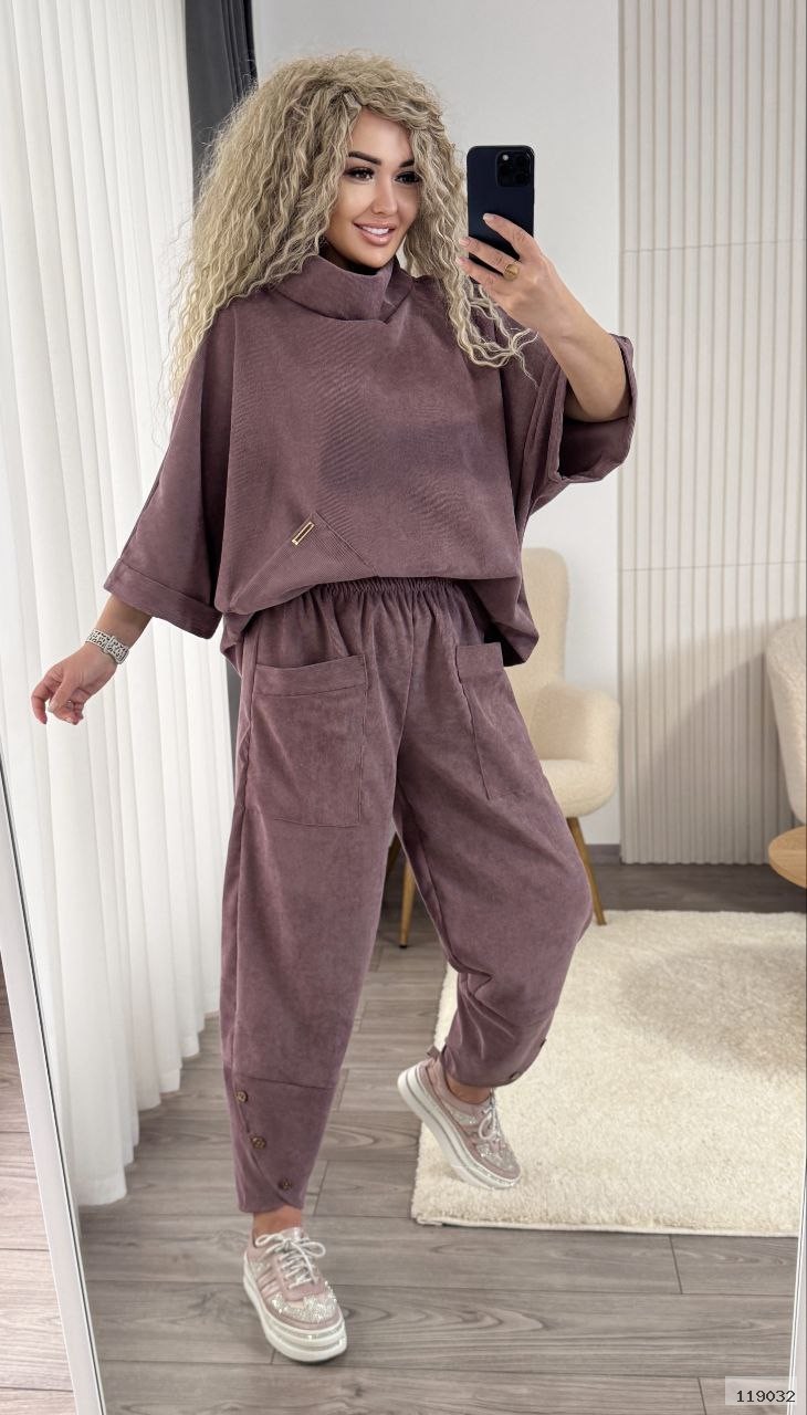 Цікавий костюмчик оверсайз. Верх в стилі "бохо", вільний. Брюки мають зручний пояс на резинці, великі кишені, оздоблення ґудзиками.