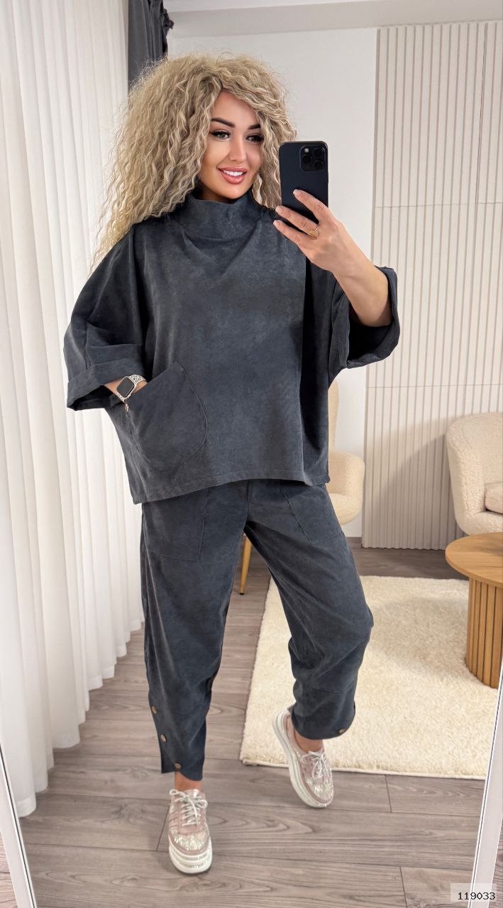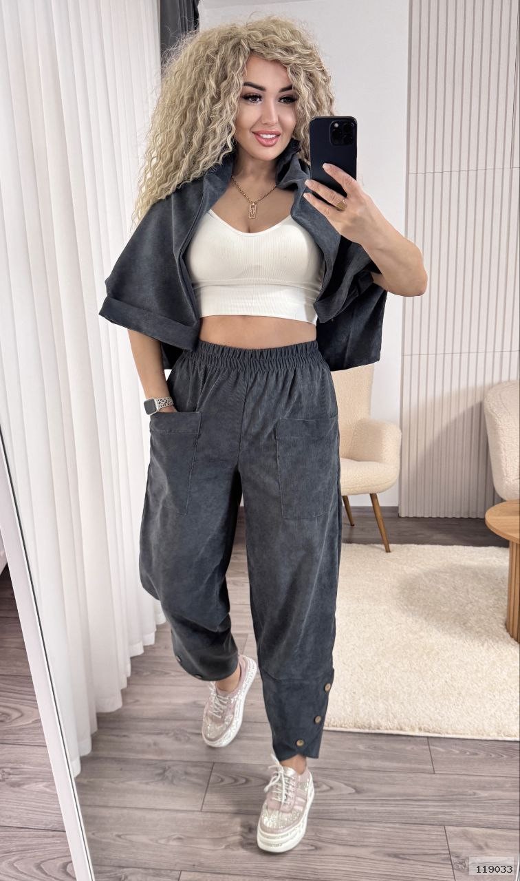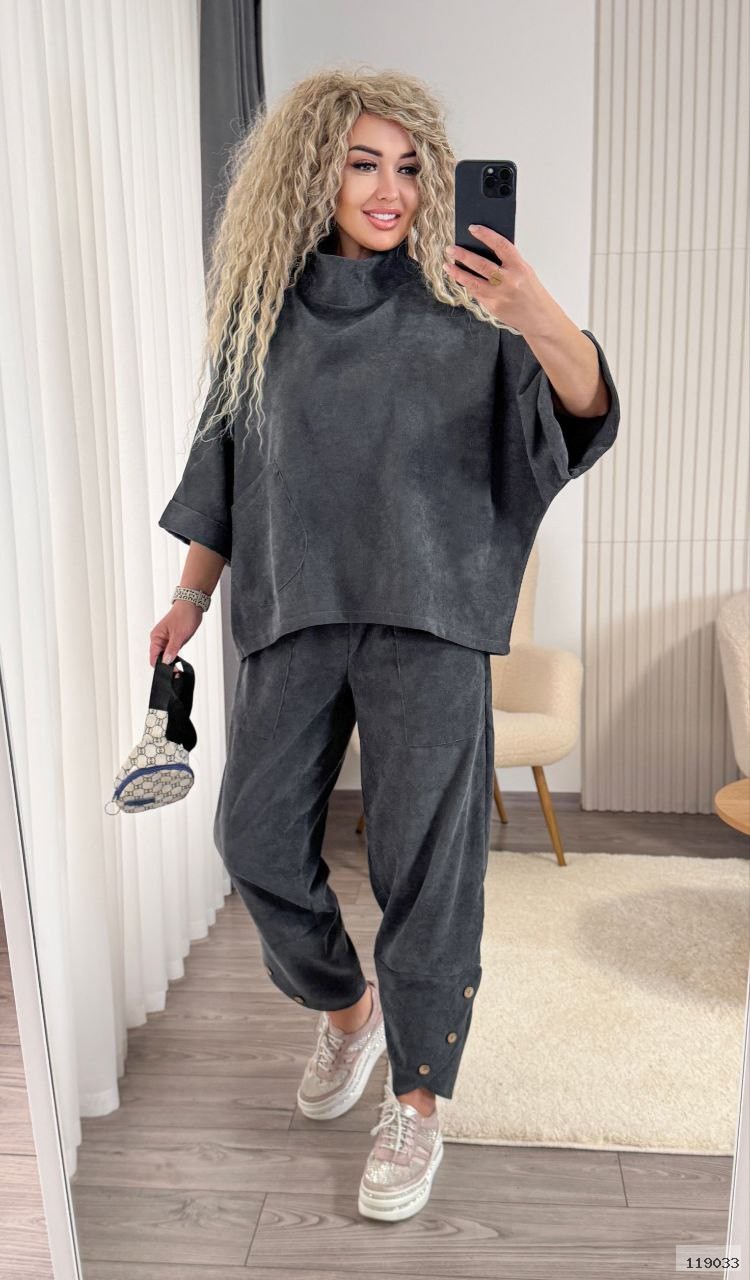 Цікавий костюмчик оверсайз. Верх в стилі "бохо", вільний. Брюки мають зручний пояс на резинці, великі кишені, оздоблення ґудзиками.