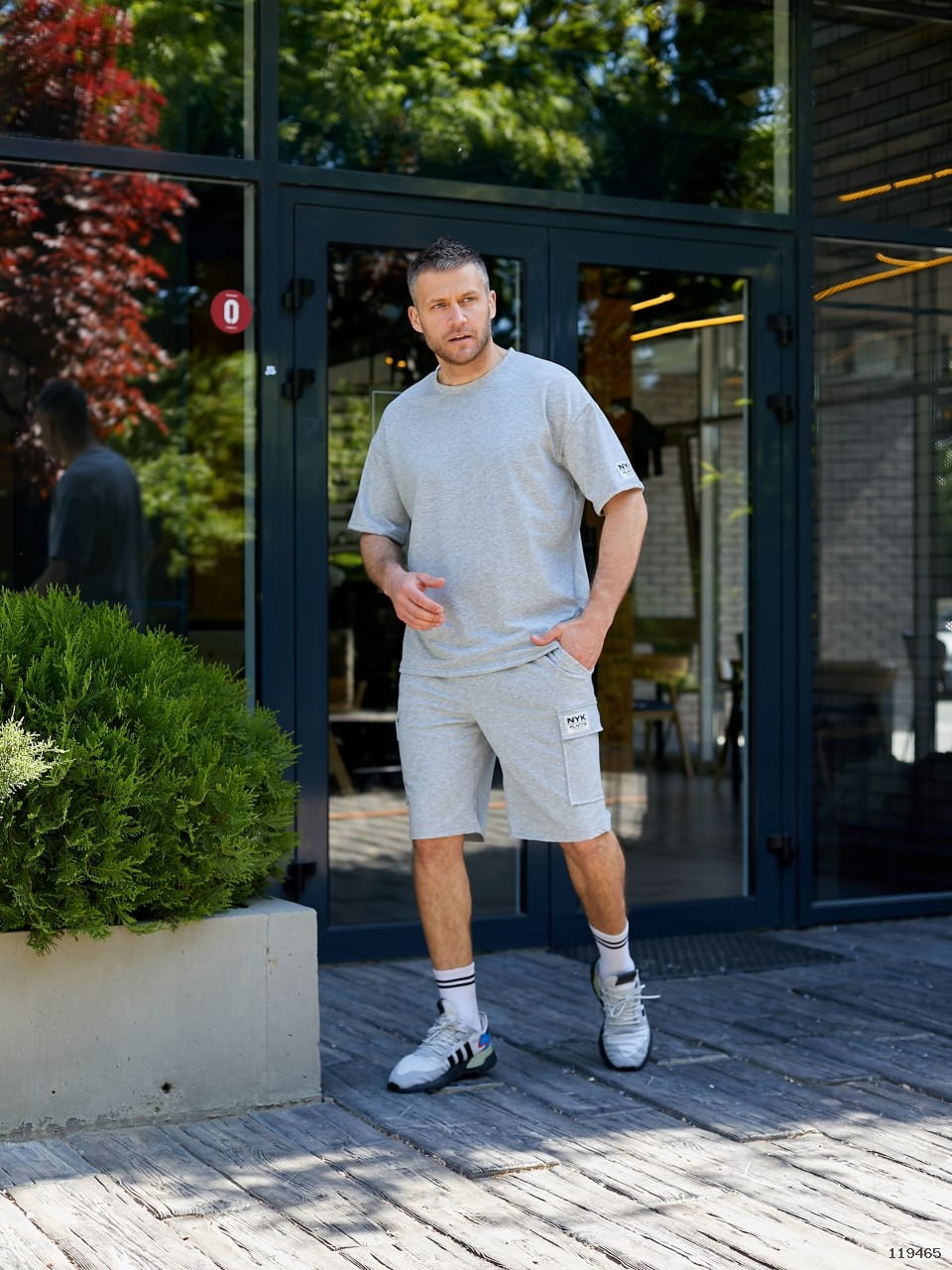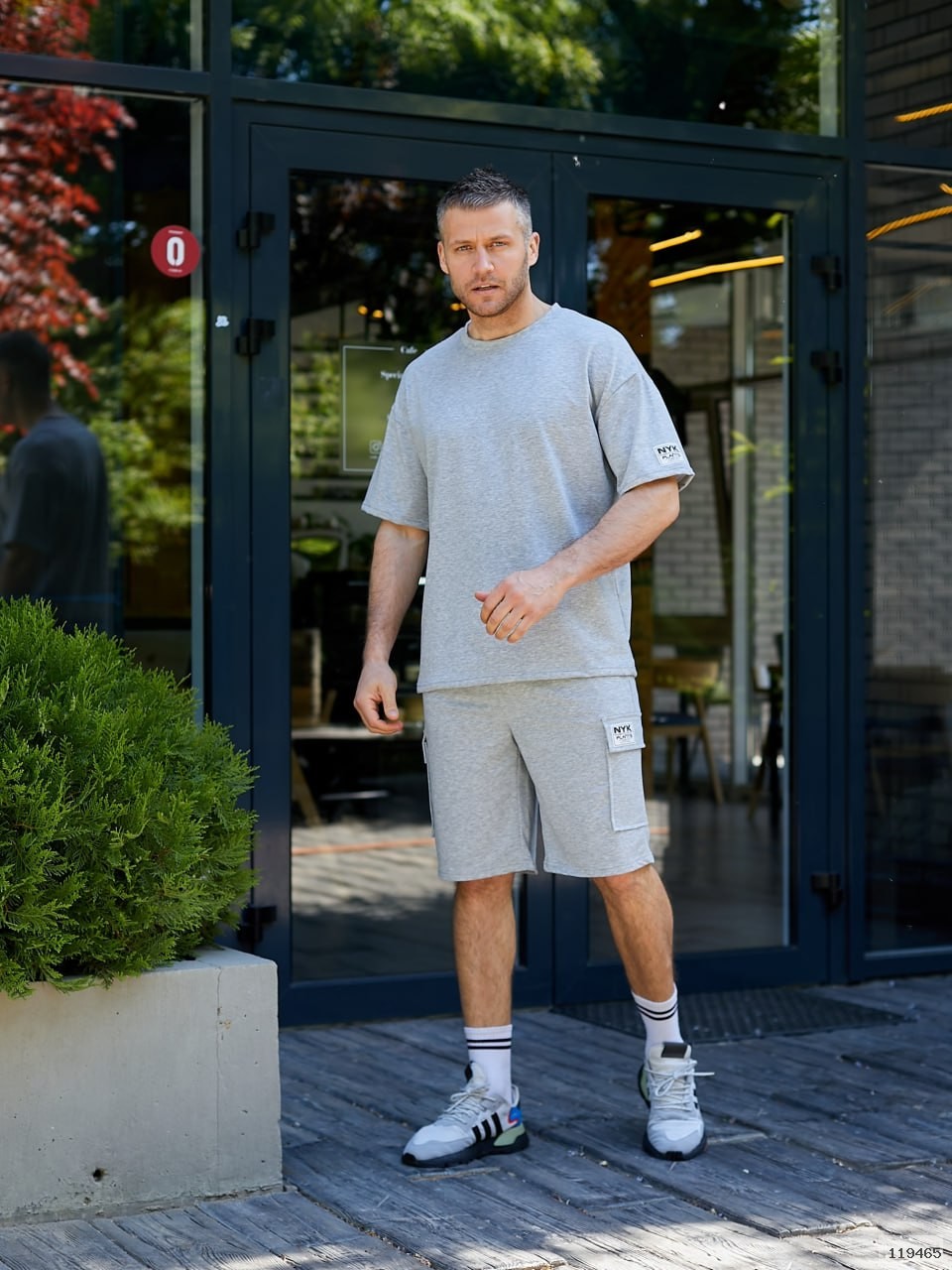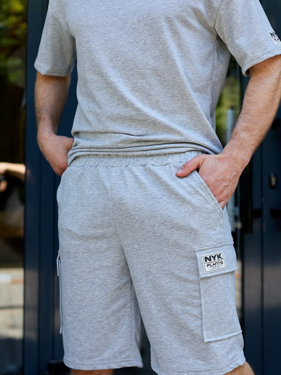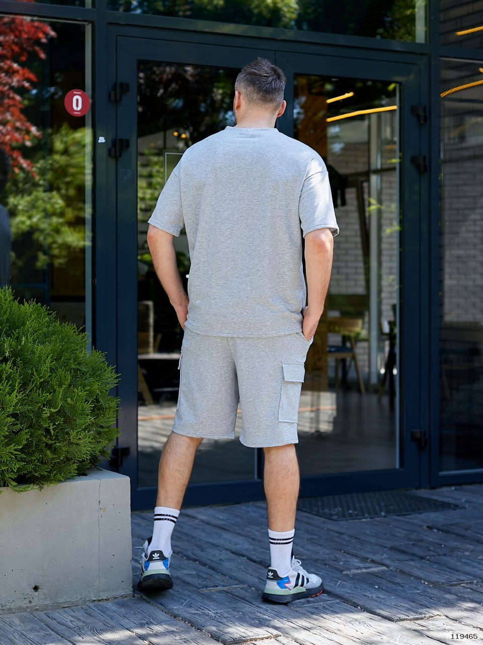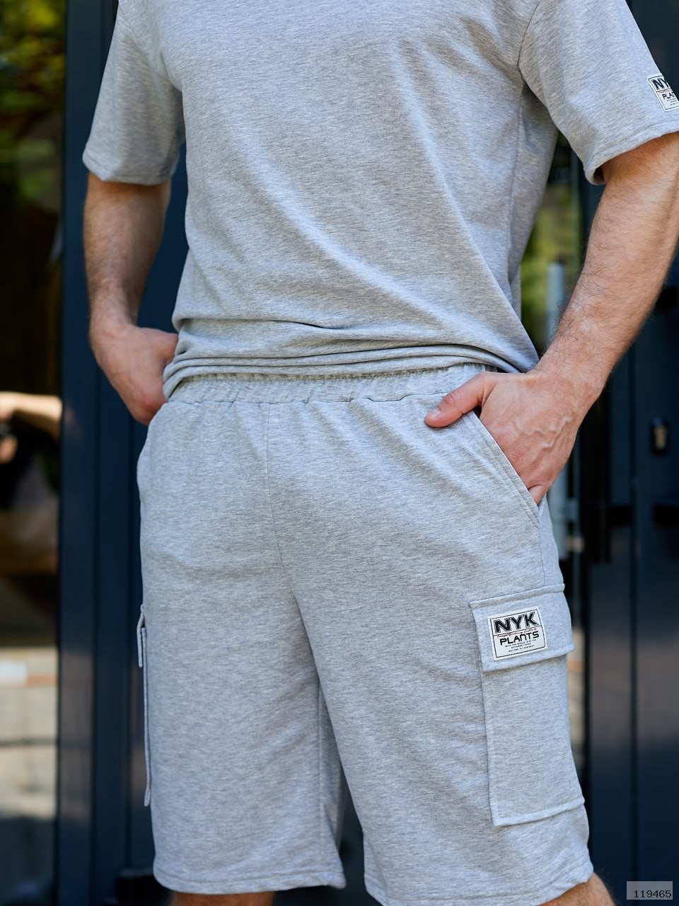 Чоловічий спортивний костюм з шортами. шорти мають чотири кишені,всі кишені робочі,пояс шорт на резинці