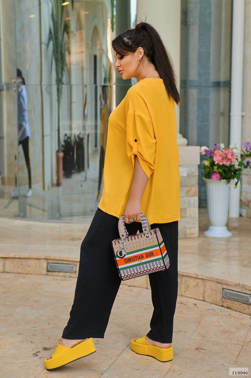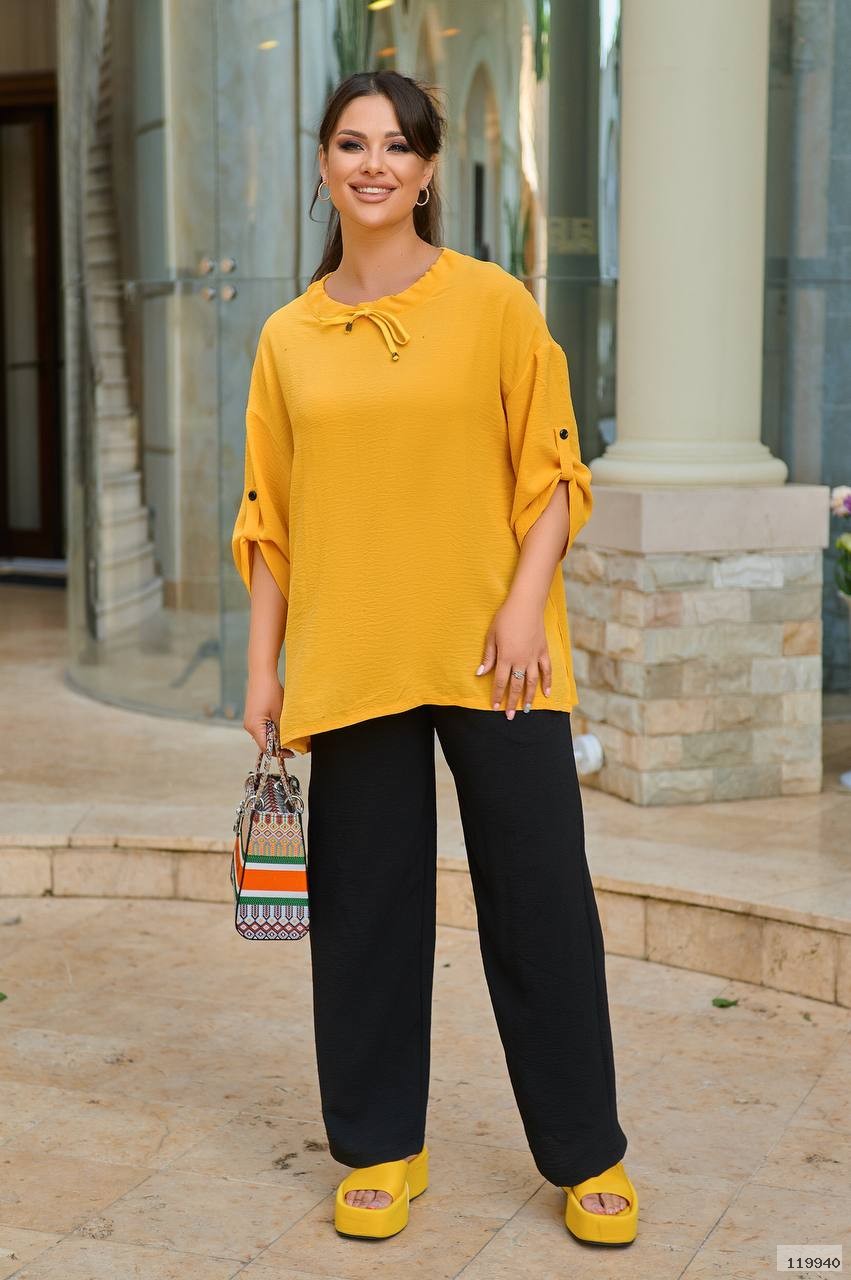 Трендовий костюм цього літа, що має бути в гардеробі кожної жінкі .Адже з білими кросівками він актуальний для прогулянок у літню спеку, а з каблуками і аксесуарами буде доречний на святі. Тканина американьский креп.Подовжений блузки і широкі прямі брюки. Ідеальне рішення для леді, щоб почувати себе комфортно.