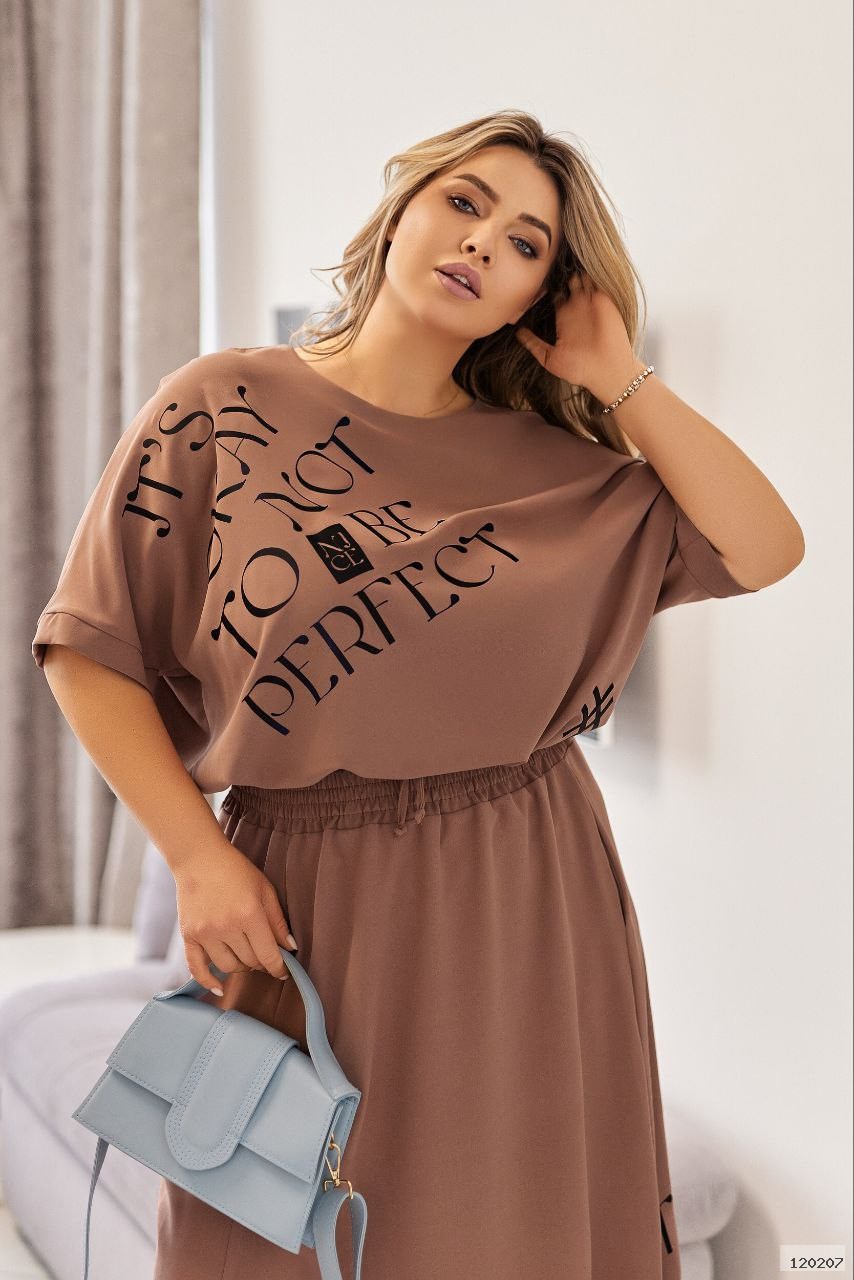 Стильний комплект із двох елементів: вільної кофтинки та довгої спідниці.