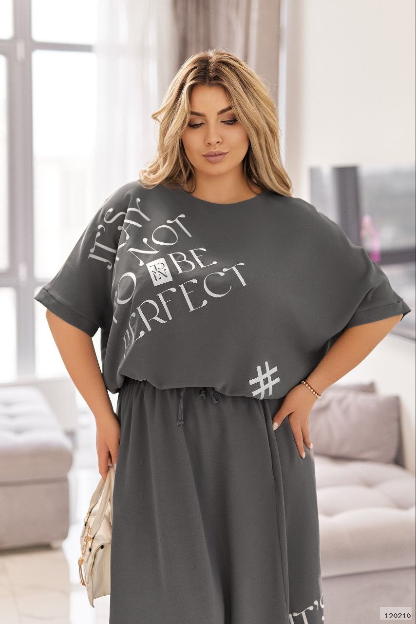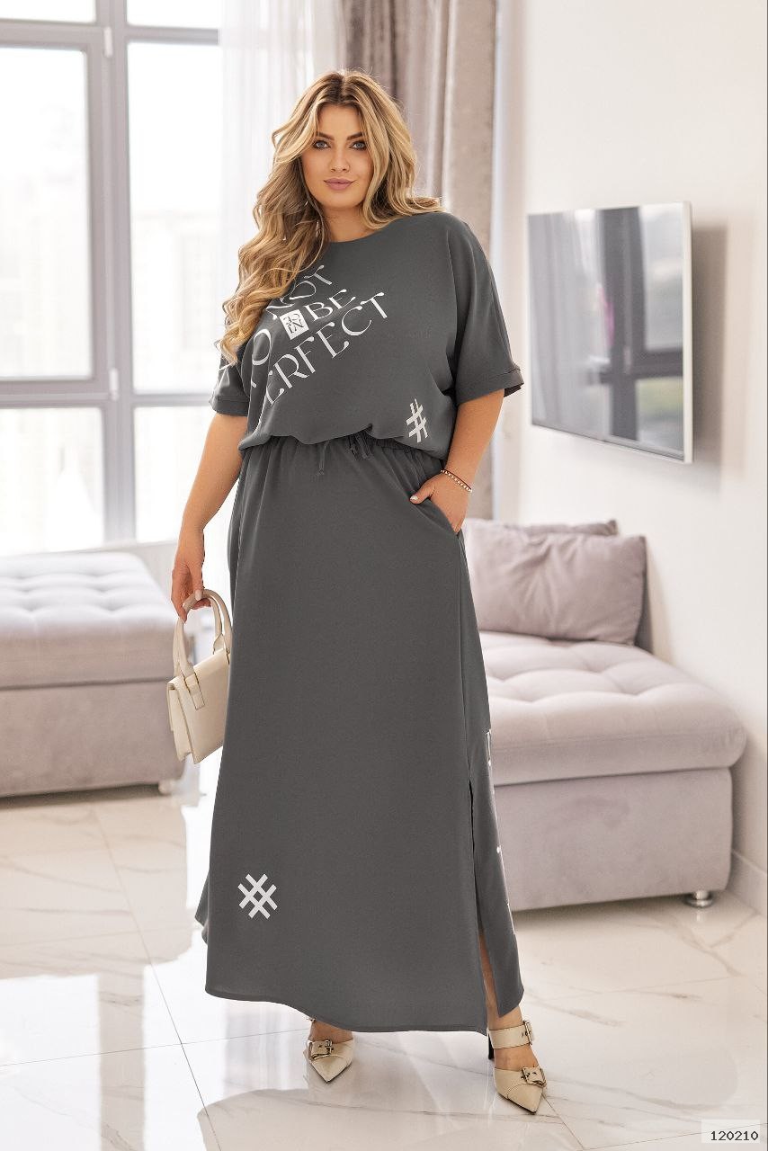 Стильний комплект із двох елементів: вільної кофтинки та довгої спідниці.