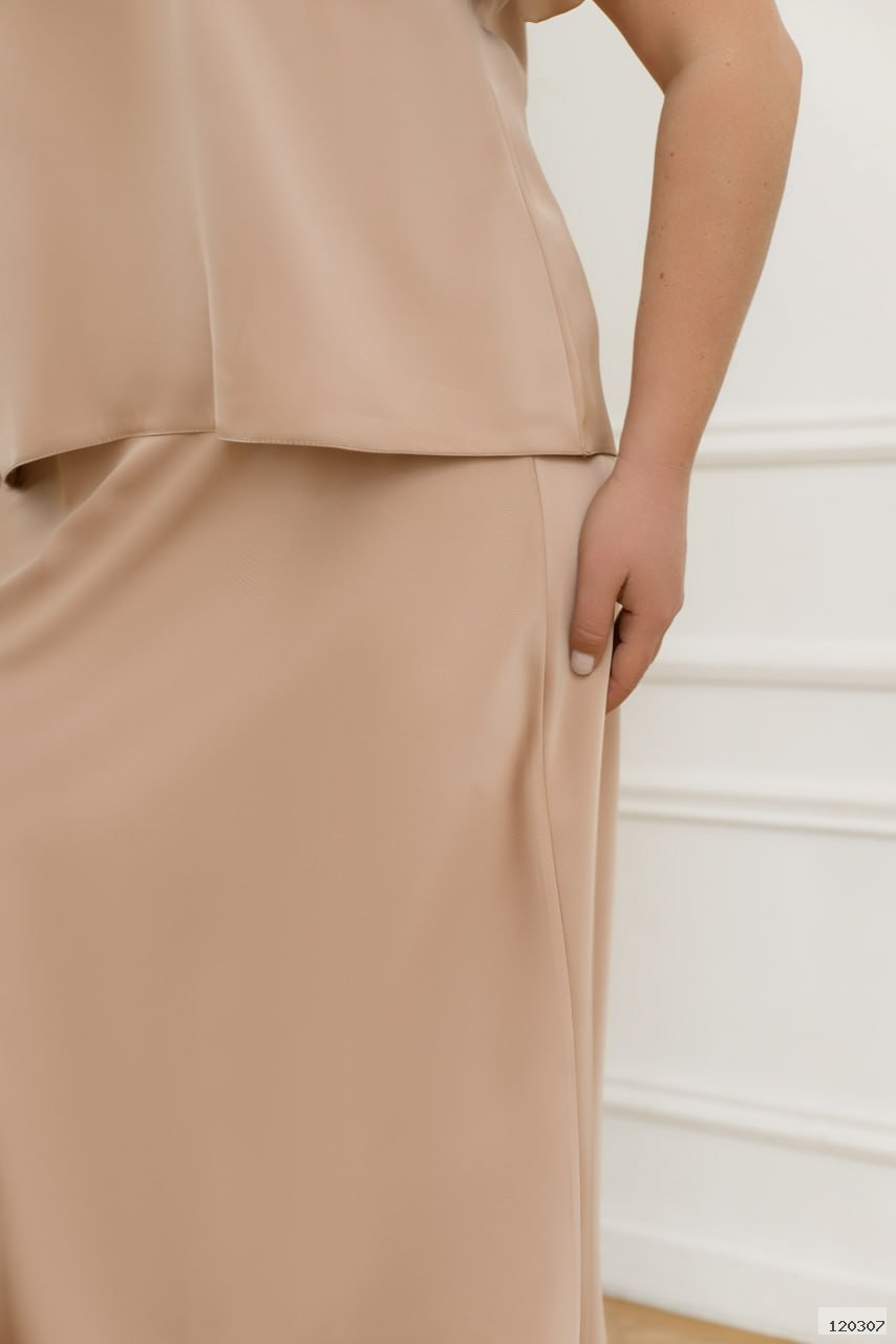 Неймовірний костюм з щільної шовкової тканини з блузкою та спідницею підкорить найзавзятіших модниць. Завдяки легкій тканині Ви відчуєте особливий комфорт, а її текстура допоможе підкреслити вигини тіла.