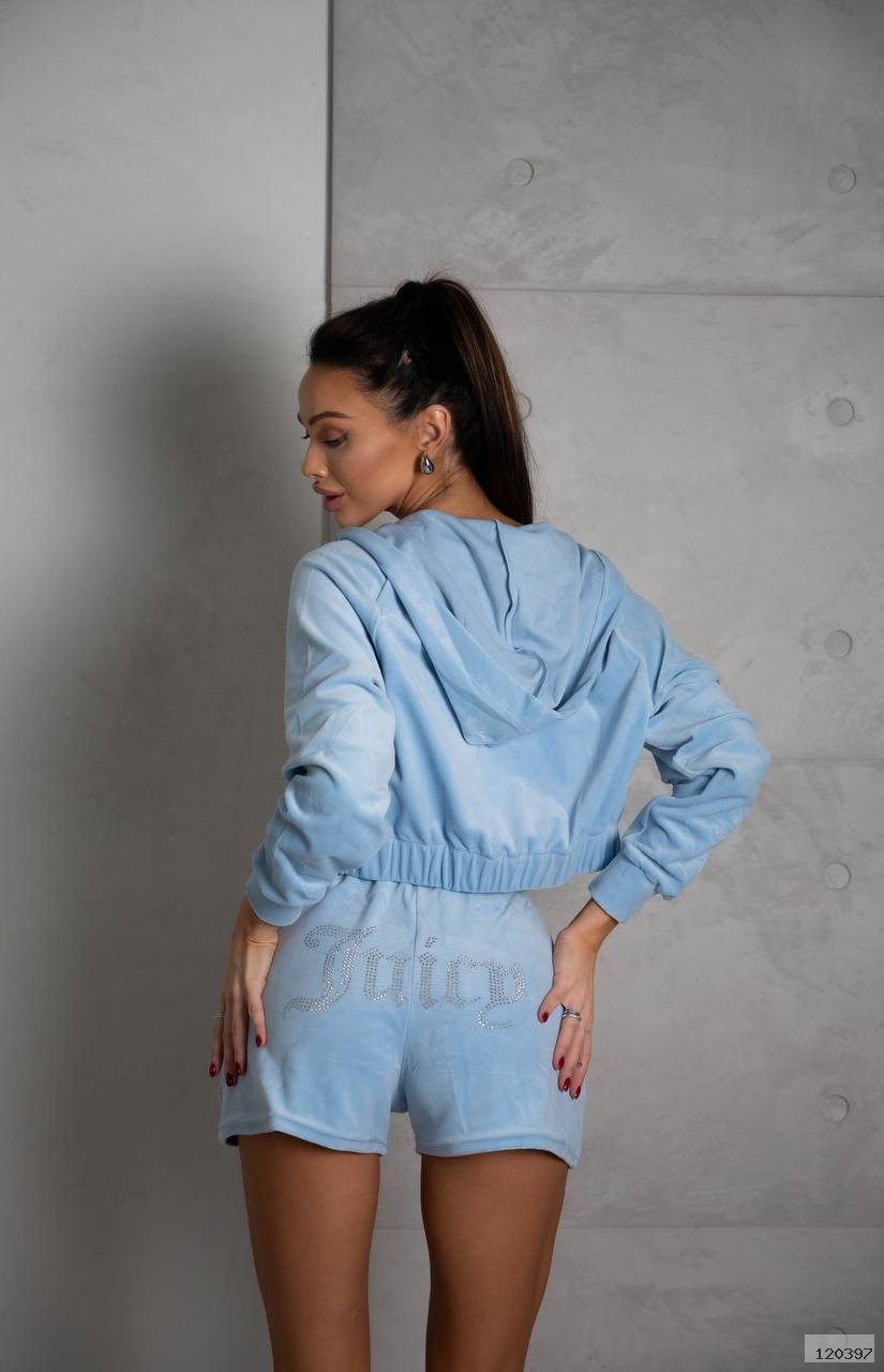 Шорти на талії зроблять її виразніше, ідеальна довжина шорт підкреслить довжину ніг, позаду викладено стразами "juicy"