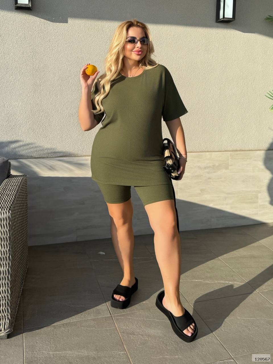 Стильний костюм двійка.Футболка оверсайз та велосипедки.Висока посадка веліків робить їх мега зручними.Футболка вільного крою дуже зручна та комфортна.