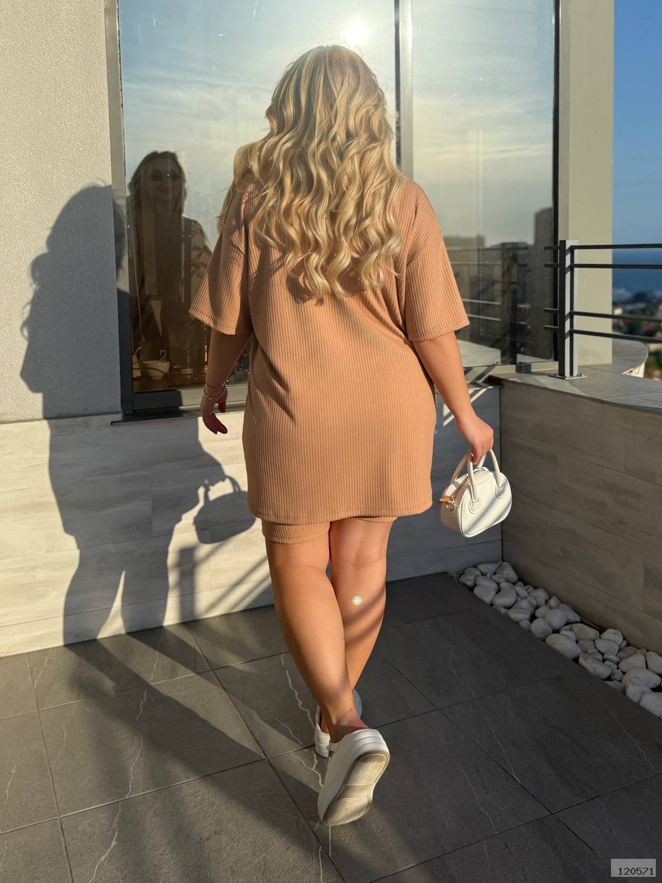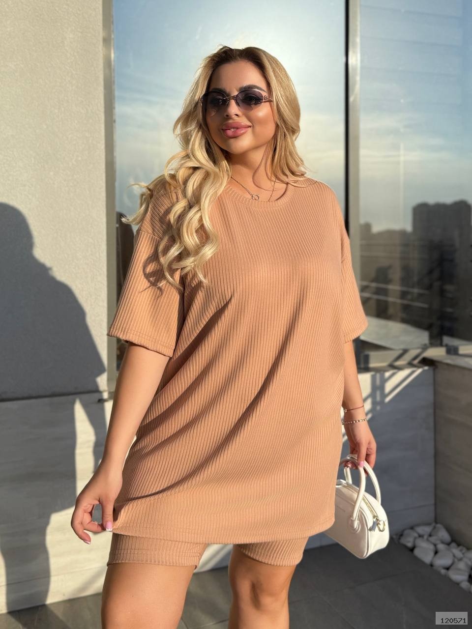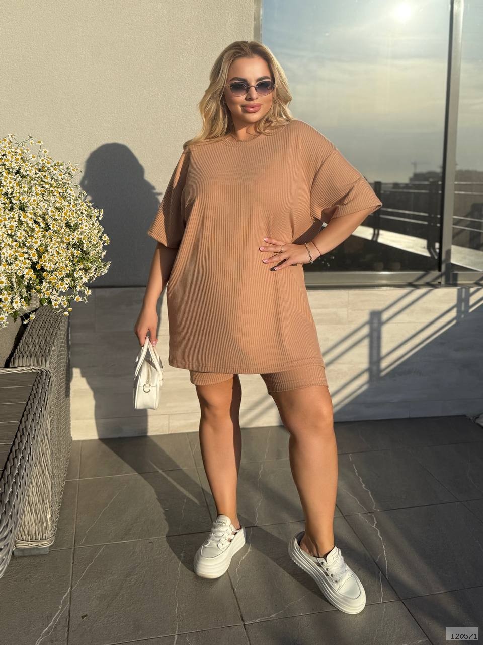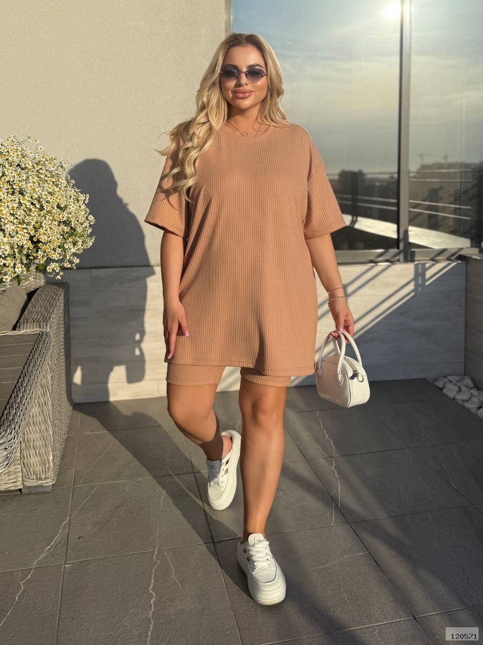 Стильний костюм двійка.Футболка оверсайз та велосипедки.Висока посадка веліків робить їх мега зручними.Футболка вільного крою дуже зручна та комфортна.