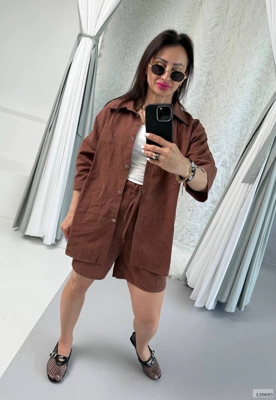 Легкий прогулянковий костюмчик із жатого льону. Саме те, що потрібно на літо
