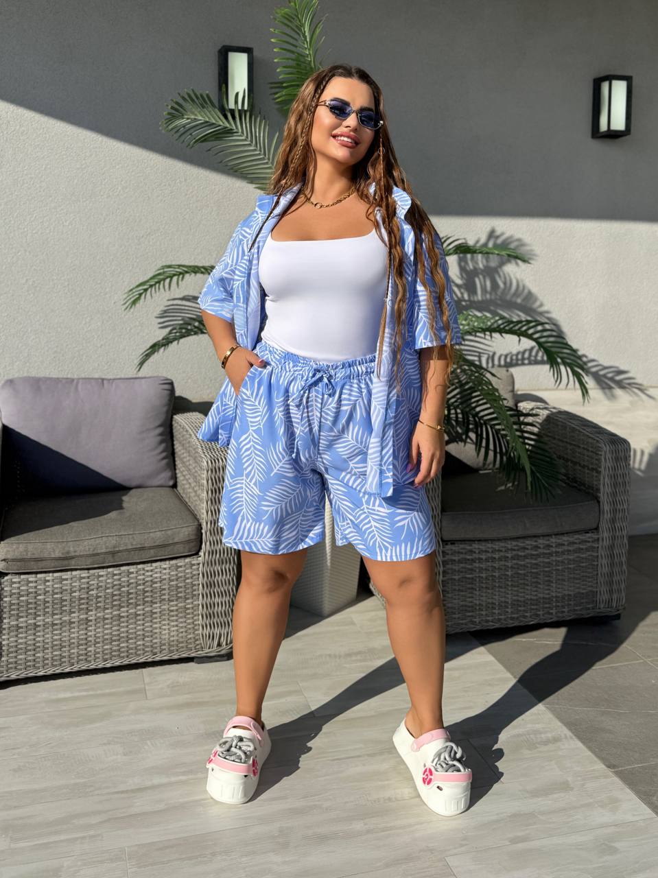 Стильний прогулянковий костюм ( сорочка + шорти)