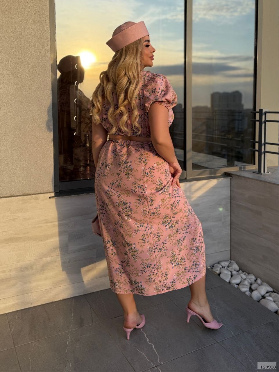 Літній костюм, Спідниця. Кофта з коротким рукавом - ліхтариком, низ кофти прилаштований на резинці, горловина прилаштована шнурком. Спідниця по фігурі з розрізом одну ногу, на поясі гумка.