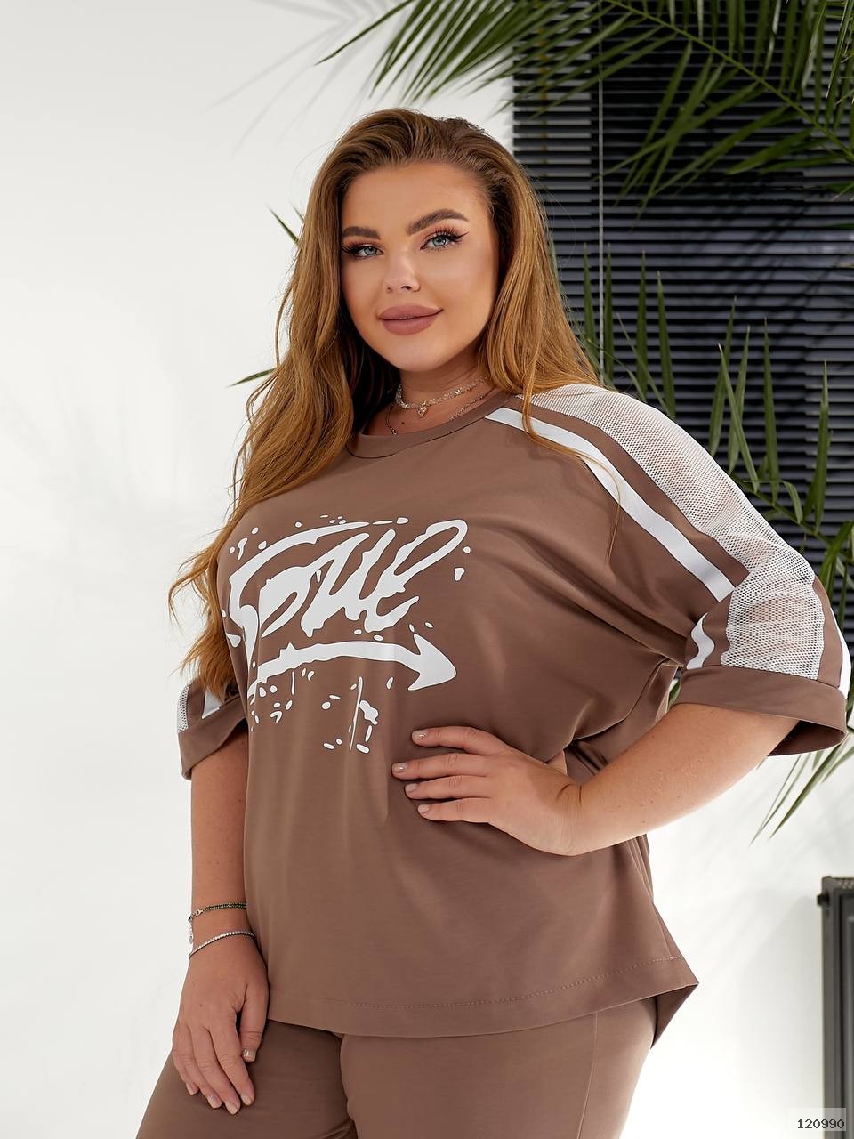 Стильний прогулянковий костюм. Футболка вільного крою декорована накатом і сіткою