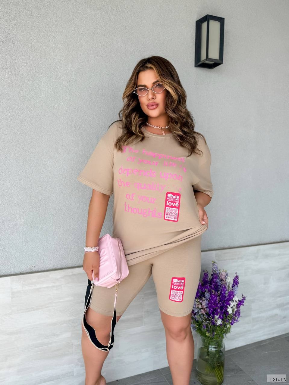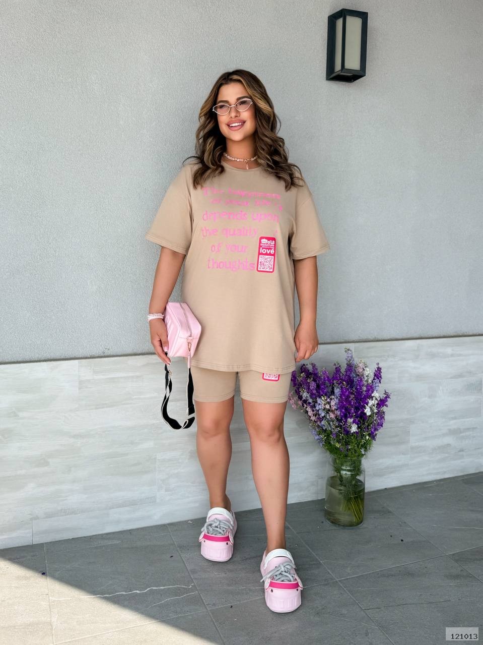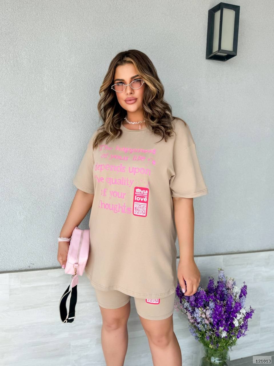Стильний костюм двійка.Футболка оверсайз та велосипедки з якісним накатом.Висока посадка веліків робить їх мега зручними.Футболка вільного крою дуже зручна та комфортна.