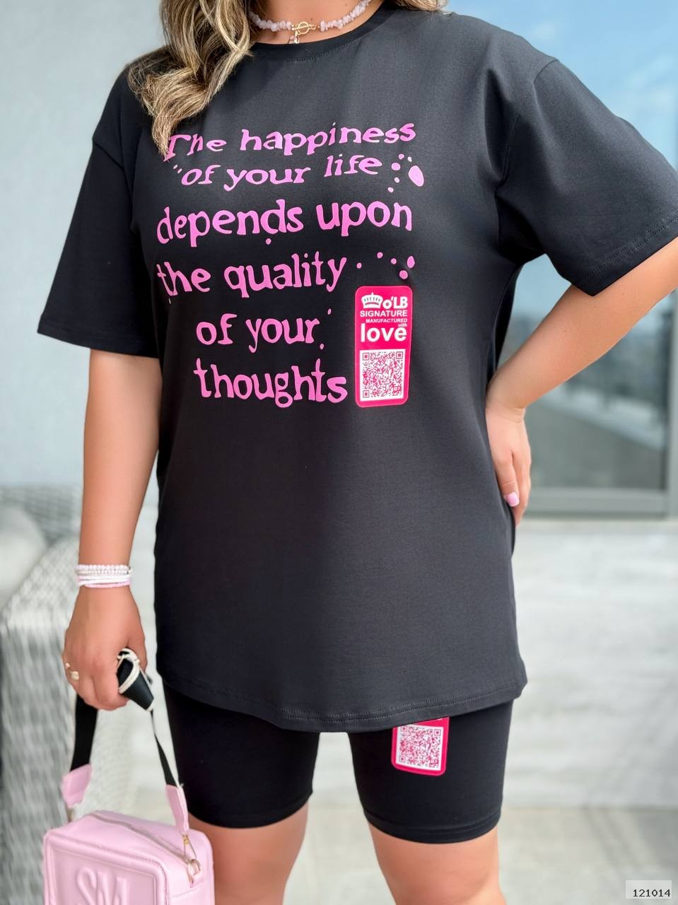 Стильний костюм двійка.Футболка оверсайз та велосипедки з якісним накатом.Висока посадка веліків робить їх мега зручними.Футболка вільного крою дуже зручна та комфортна.