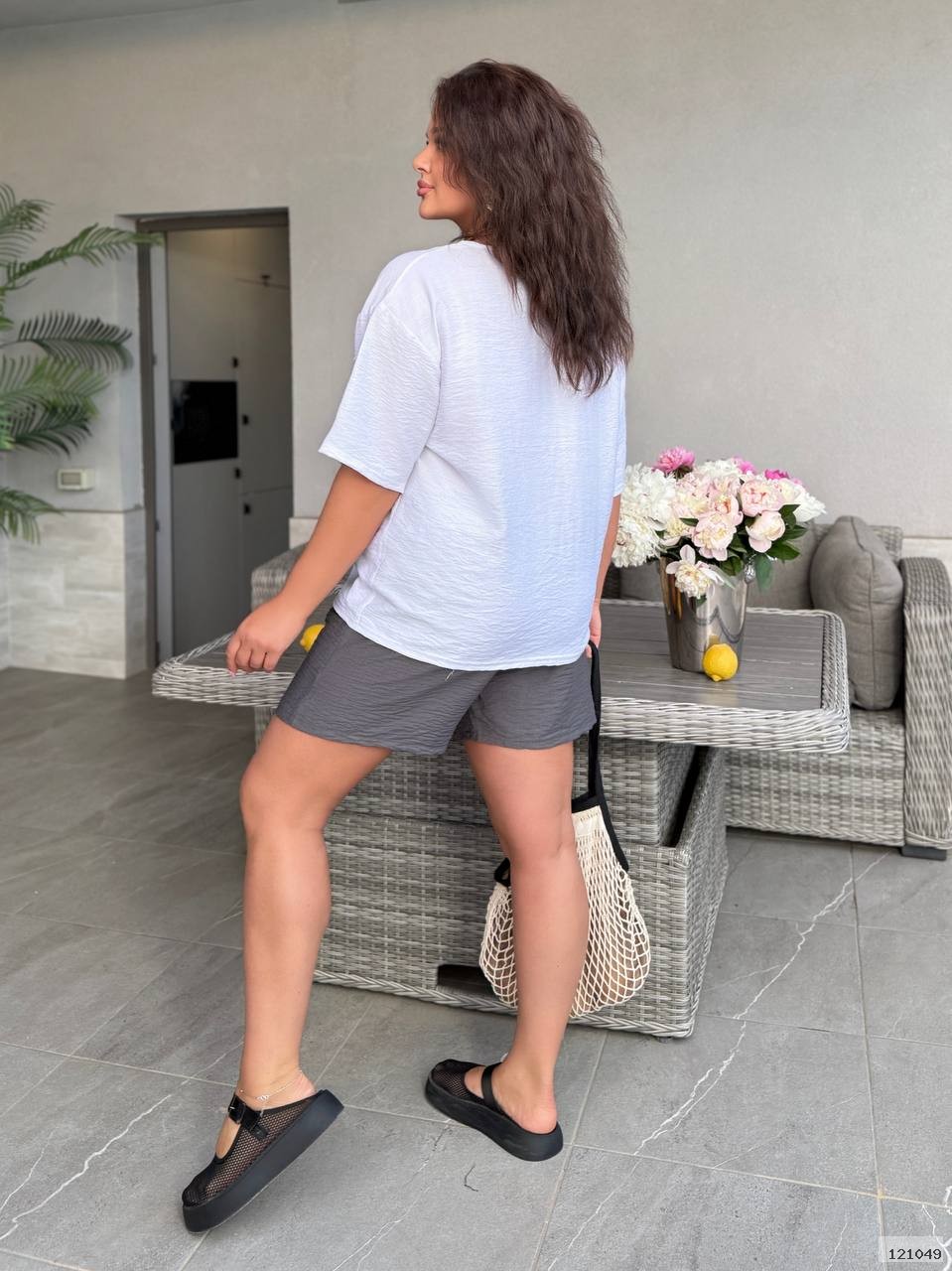 Тканина легка та мʼяка, для літа в самий раз, пояс шортів на резинці, глибокі кишені, футболка оверсайз