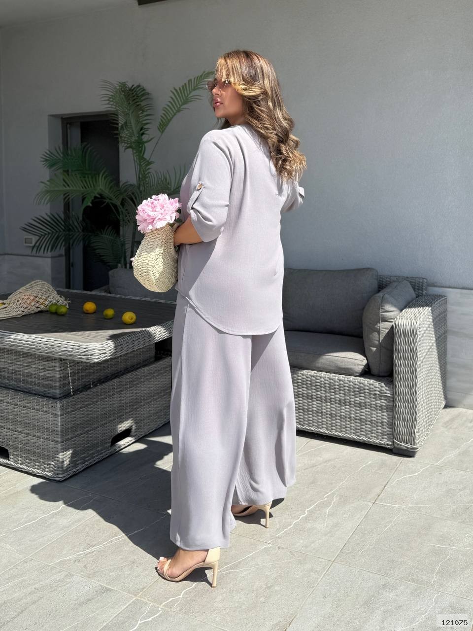 Штани палаццо вільного крою мають бічні кишені та резинку на талії, футболка вільного крою декорована ґудзиками, довжина рукава регулюється
