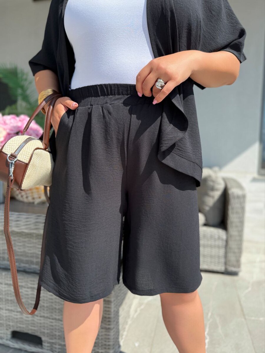 Шорти ,по бокам яких кишені,пояс на резинці ,дуже зручні.