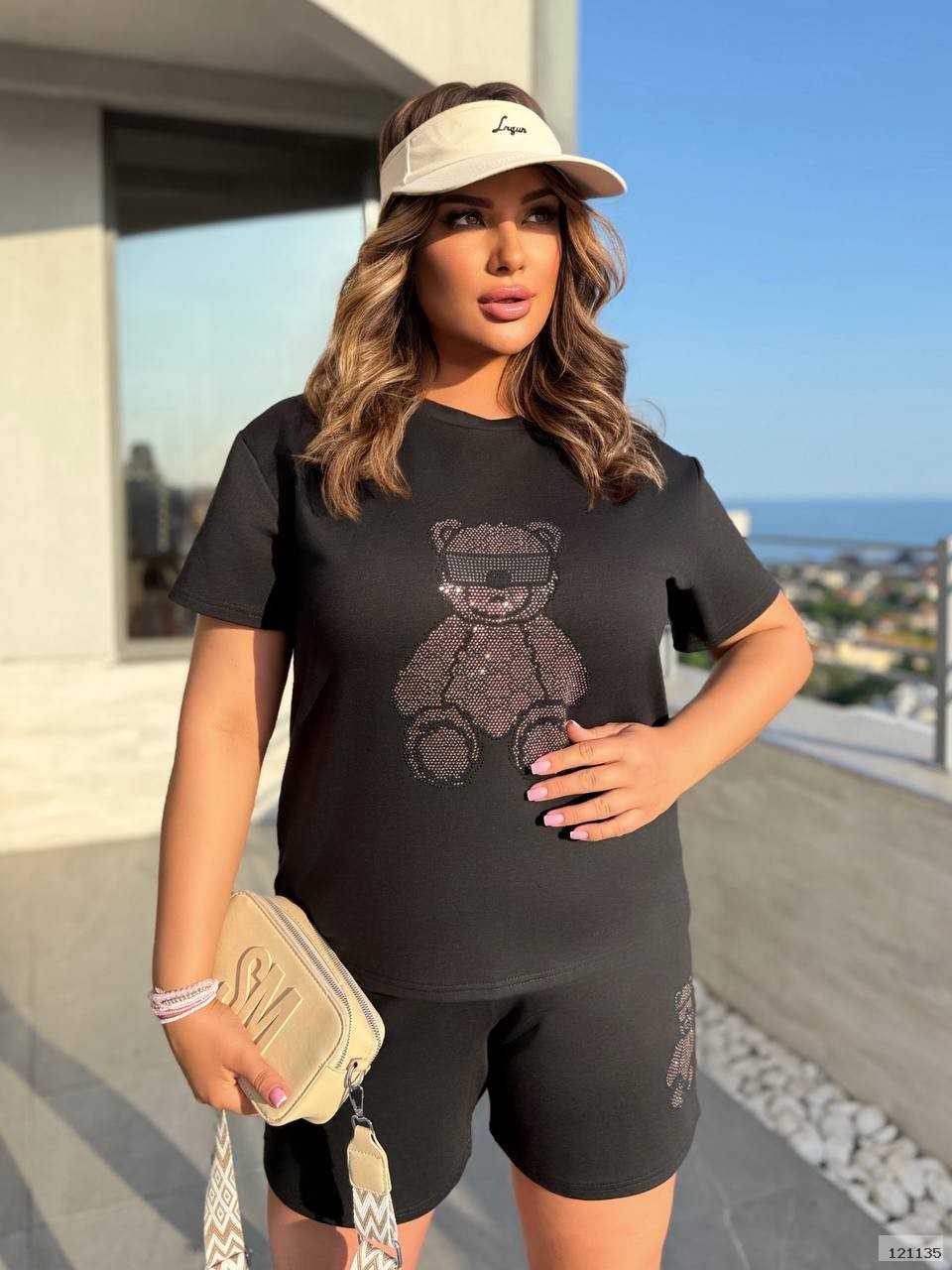 Крутий костюм футболка та шорти Термо аплікація «мішка в окулярах»із страз, стрази переносяться на вироб спеціальним автоматизованим пресом. Якість аплікації гарантуємо