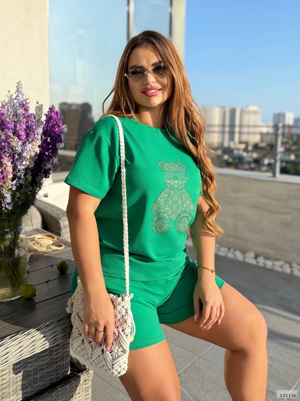Крутий костюм футболка та шорти Термо аплікація «мішка в окулярах»із страз, стрази переносяться на вироб спеціальним автоматизованим пресом. Якість аплікації гарантуємо