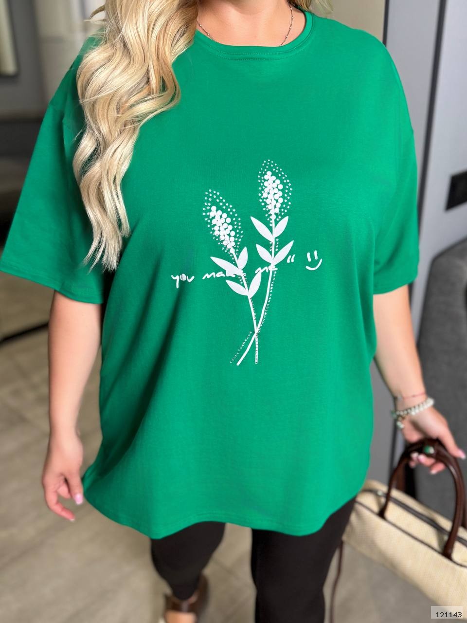 Стильний прогулянковий костюмчик. Футболка оверсайз, прикрашена стразами, лосини без кишень, пояс резинка