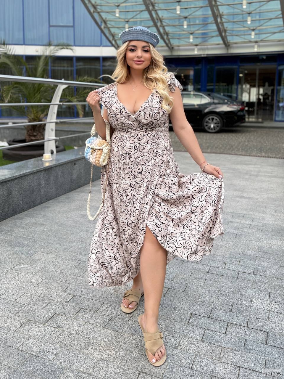 Легенька сукня максі на літо з цікавим принтом. Імітація запаху, з боку блискавка