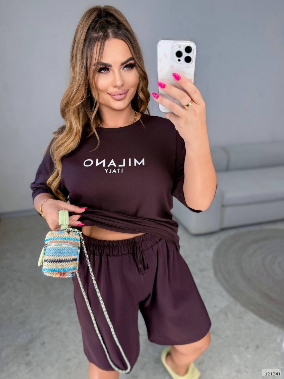 Комфортний вільний костюм “Milano” футболка + шорти з бавовни/кулірки хб Турція». Шорти з високою посадкою з кішенями у бічних швах
