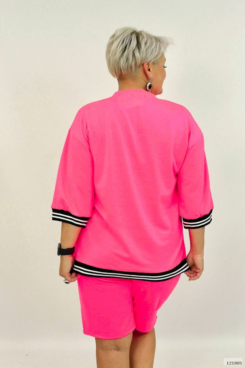 Яскравий, насичений неоновий костюм виготовлений с двунитки. Футболка вільного крою, подовжена, з якісним накатом: "Take what you need" - бери від життя все, що хочеш! та контрастними манжетами.