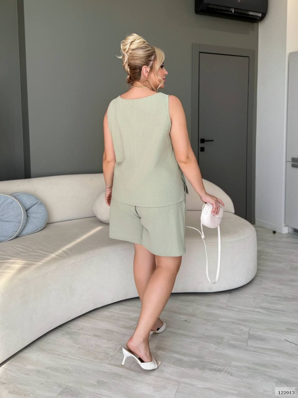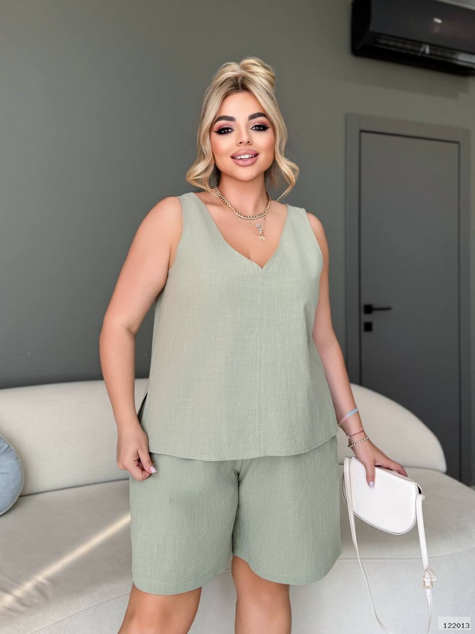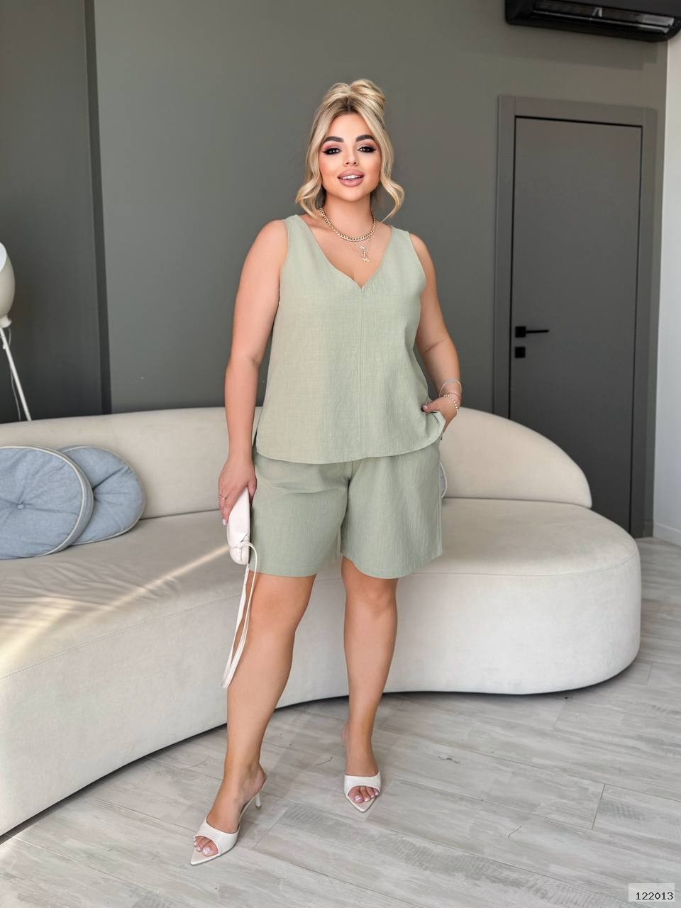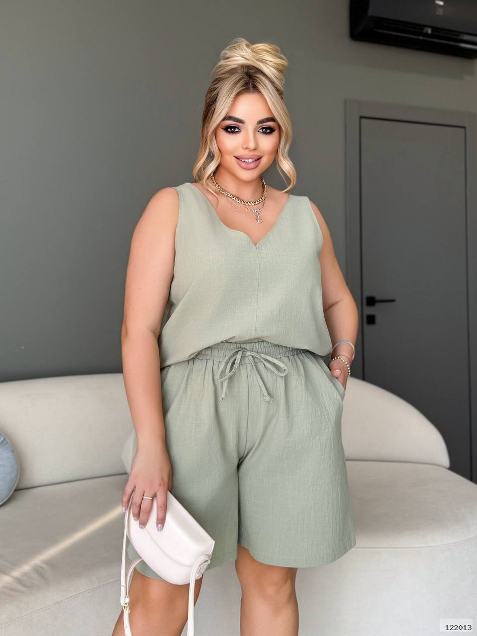 Стильний костюм на спекотне літо. Вільна туніка з розрізами з боків. Шорти з кишенями у бічних швах з посадкою вище середнього на еластичній гумці.