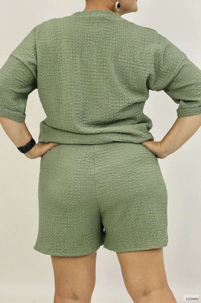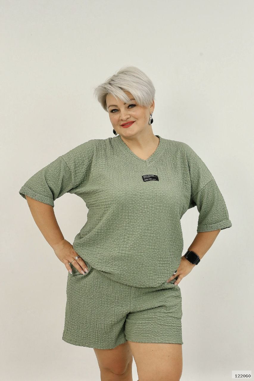 Стильний костюм з м'якої, приємної тканини, турецького виробництва, тканина дихаюча, не парить, гарна розтяжність. Шорти на широкій резинці, є глибокі кишені. Дуже зручний комплект на кожен день.