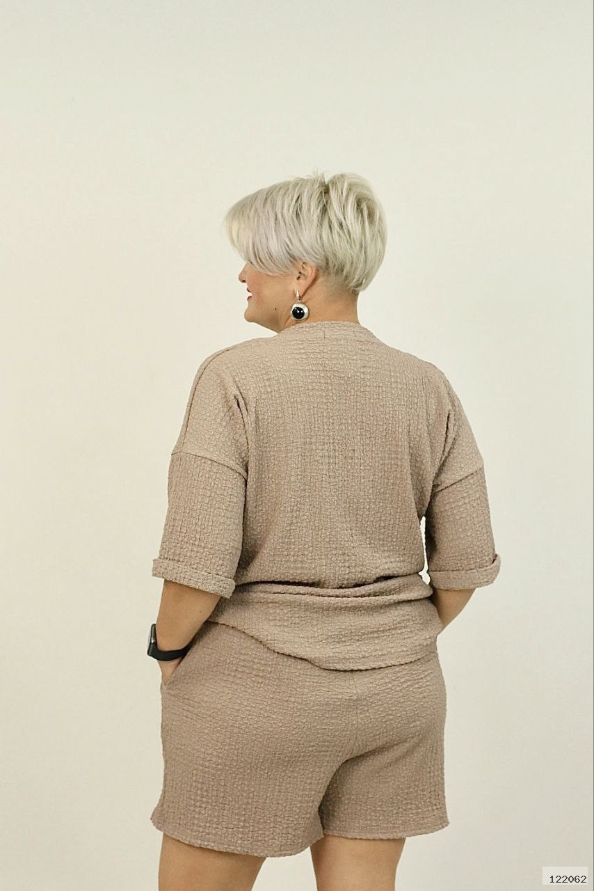 Стильний костюм з м'якої, приємної тканини, турецького виробництва, тканина дихаюча, не парить, гарна розтяжність. Шорти на широкій резинці, є глибокі кишені. Дуже зручний комплект на кожен день.