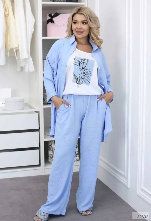 Сорочка+футболка зі сублімацією +брюки палацо. Найзручніший і комфортний одяг на всі часи Літо – це час прогулянок, трійка у найніжніших кольорах – актуальна, як ніколи.