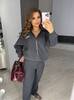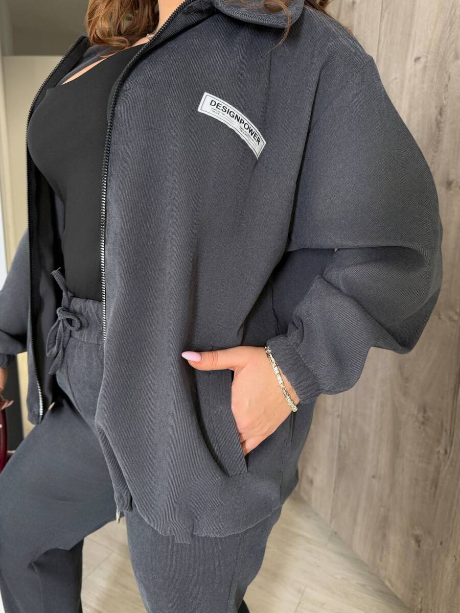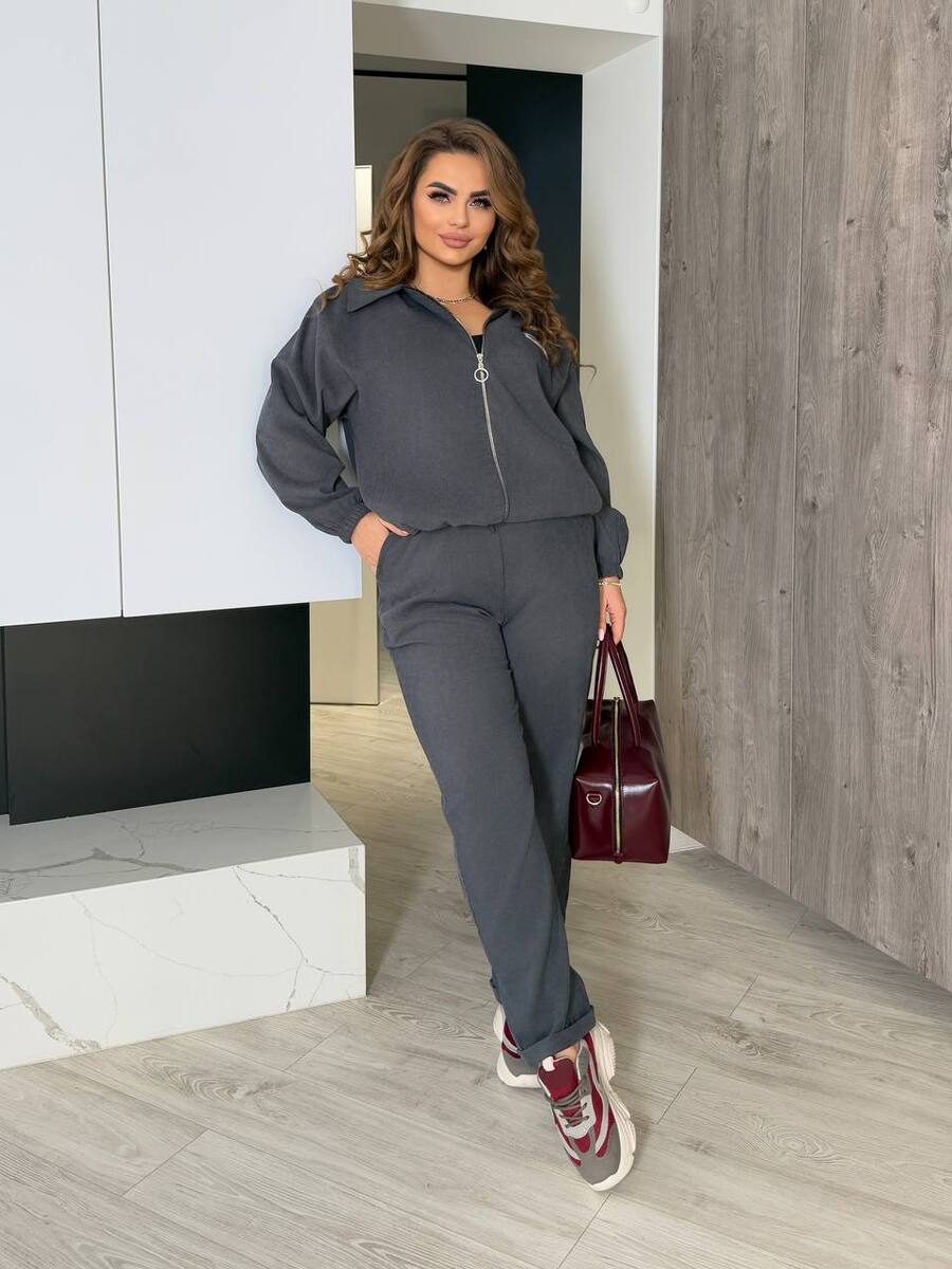 Кофтина зі спущеними рукавами, застібаеться на блискавку, низ регулюється кулискою. Як завжди зручні кишені та привабливий комірець.Брюки універсальні, трохи завужені до низу, мають дві кишені, єластичний пояс теж регулюються кулискою. І як завжди з гарною посадкою. Пасує до будь якої сітуації, окрім того дуже комфортний.