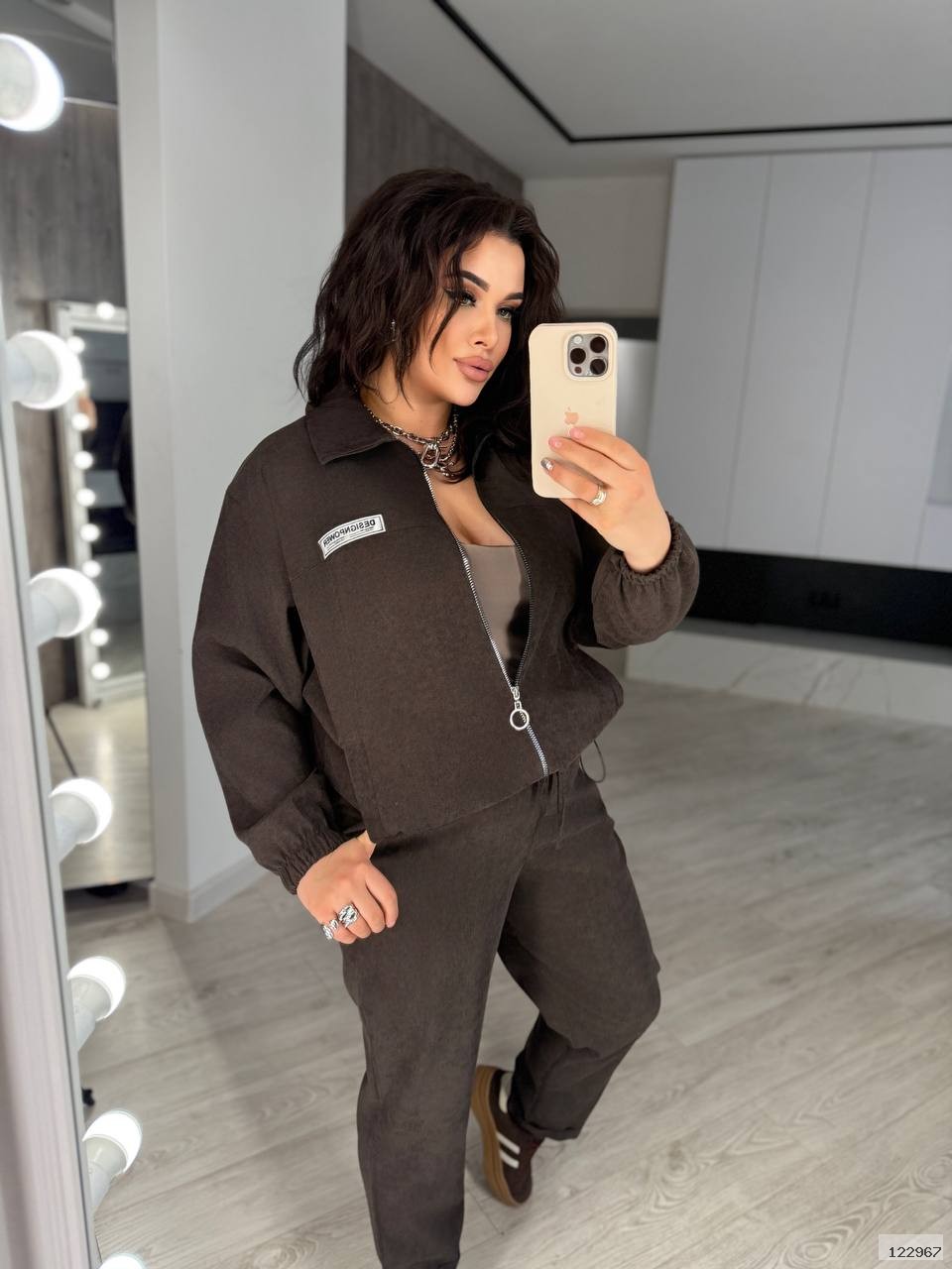 Кофтина зі спущеними рукавами, застібаеться на блискавку, низ регулюється кулискою. Як завжди зручні кишені та привабливий комірець.Брюки універсальні, трохи завужені до низу, мають дві кишені, єластичний пояс теж регулюються кулискою. І як завжди з гарною посадкою. Пасує до будь якої сітуації, окрім того дуже комфортний.