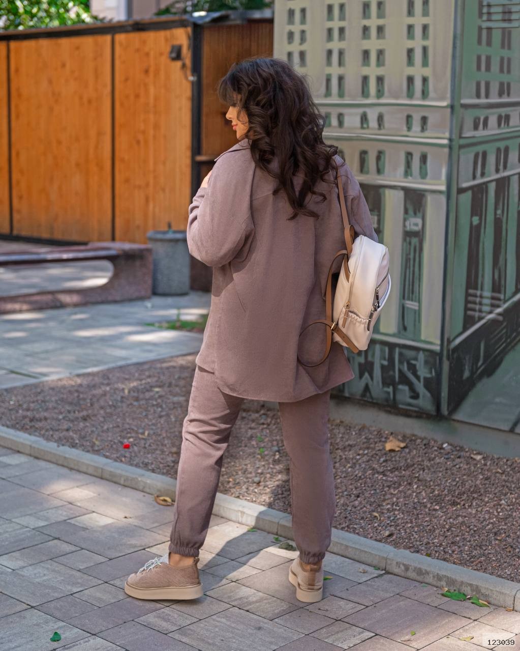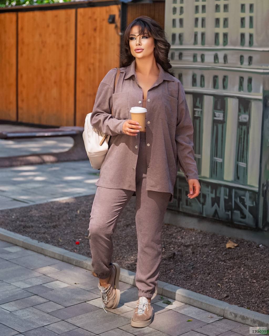 Стильний прогулянковий костюм двійка: штани + сорочка з мікровельвету