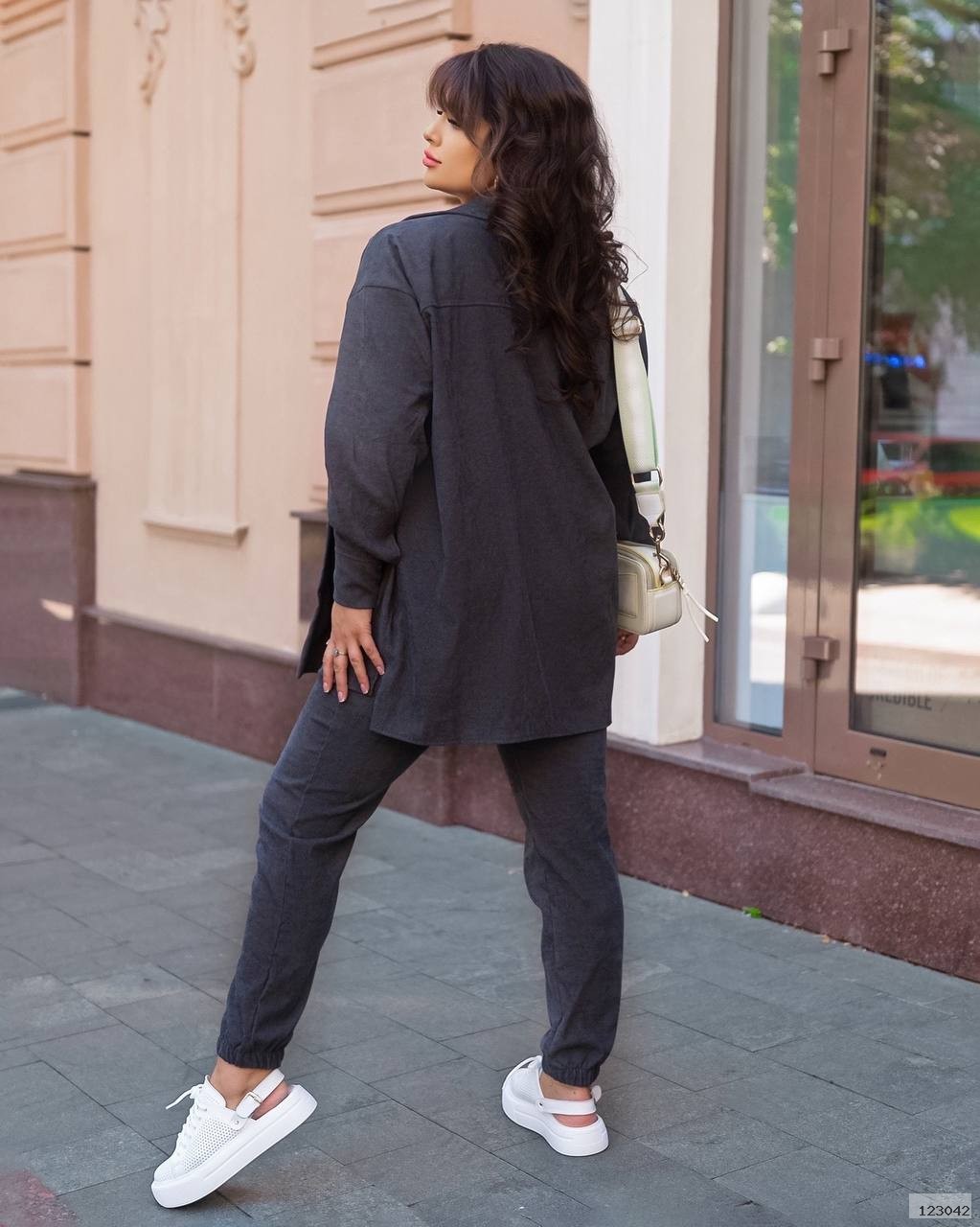 Стильний прогулянковий костюм двійка: штани + сорочка з мікровельвету