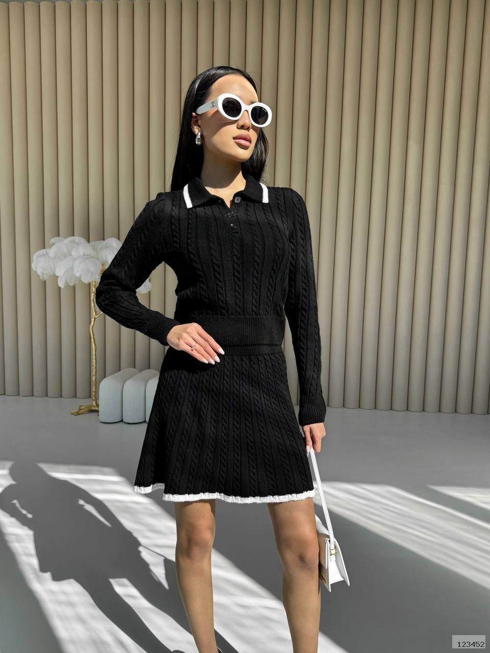 Кокетливий комплект з кофтою поло та спідницею-сонце - ідеальний вибір для стильного образу з легким шармом. Відмінно поєднується з будь-якими аксесуарами та взуттям.