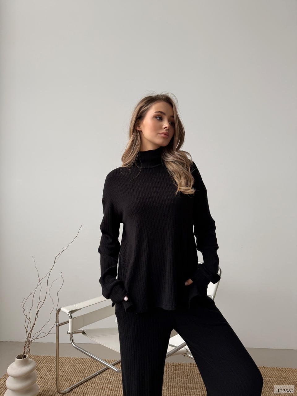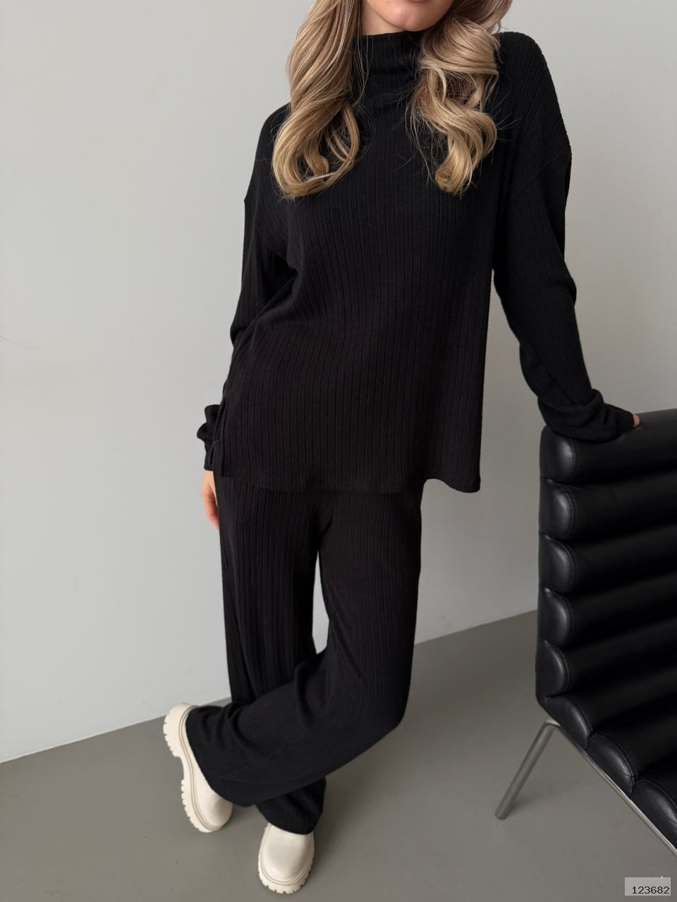 Це стильний та комфортний в'язаний костюм, який складається з кофти вільного крою та розкльошених штанів. Ідеальний варіант для осінньо-зимового сезону або для затишного відпочинку вдома та стильного casual-образу на вулиці.