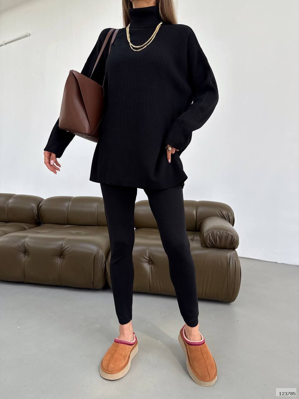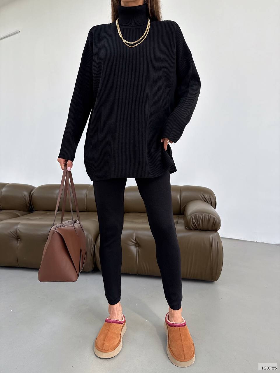 Светр в рубчик оверсайз та лосінки з ефектом утяжки