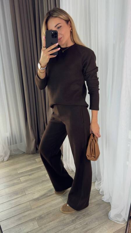 Костюм штани талія на резинці, з двома кишенями. Кофта рукав реглан. Тканина приємна до тіла, м'яка, тепла, не колеться