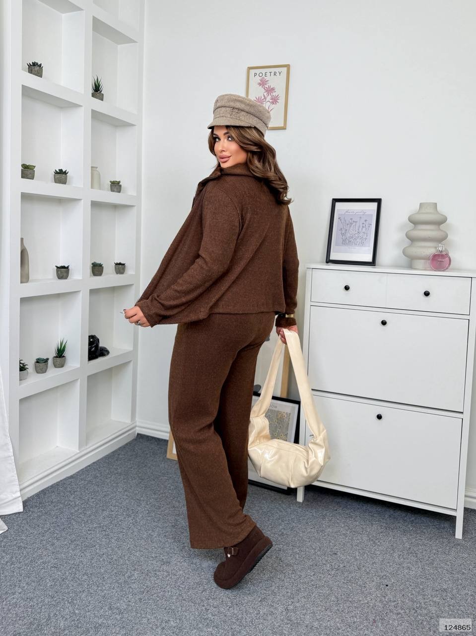 Костюм штани палацо та кофтинка на блискавці з ангори рубчик.