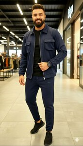 Костюм із м’якої трикотажної тканини на флісі.Кофта на блискавці з накладними кишенями.Штани на резинці зі шнурком для регулювання талії,з бічними кишенями та манжетами внизу.